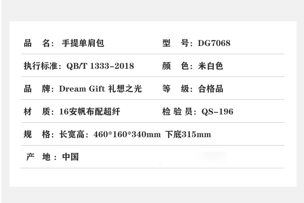 礼想之光 潮流时尚手提单肩两用帆布包DG7068