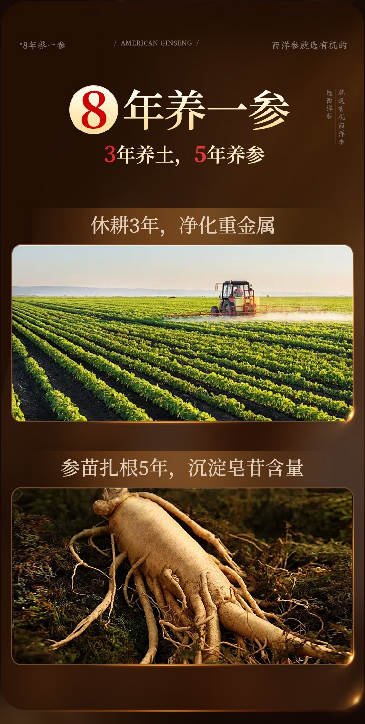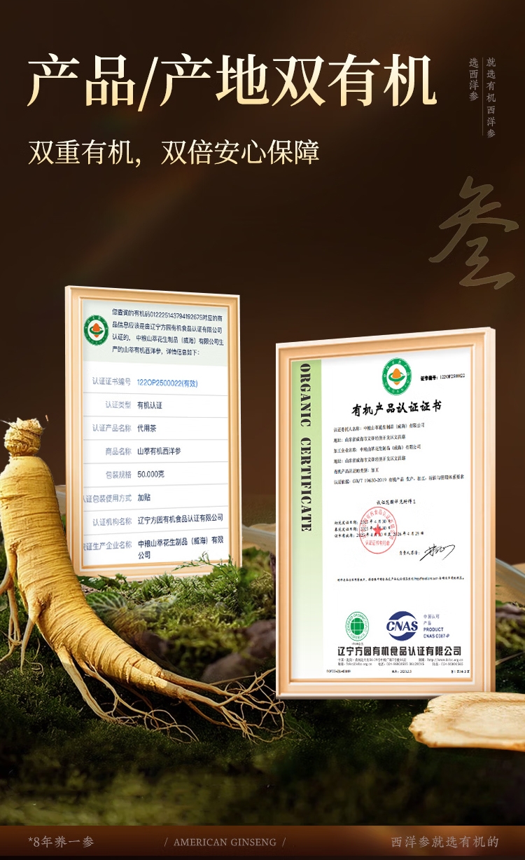 承黑土滋养,经八载光阴。双有机认证,0 农残纯净;产品荣获巴拿马有机金奖;切片如莹,汤色清透;参香温润,泡水清润养气