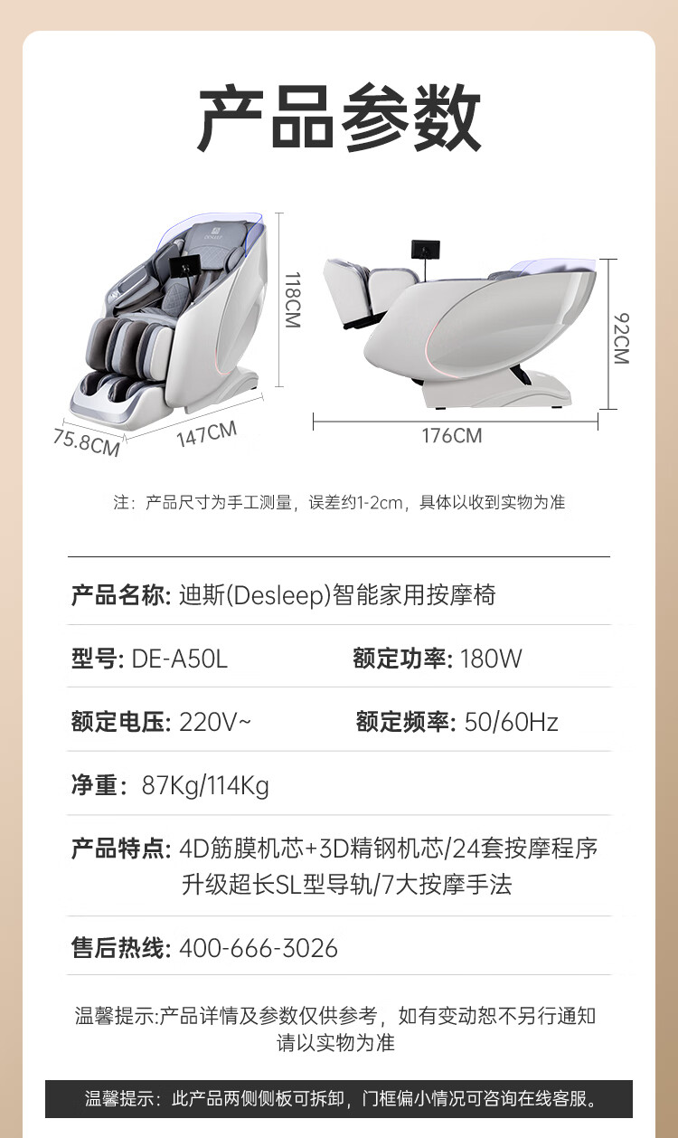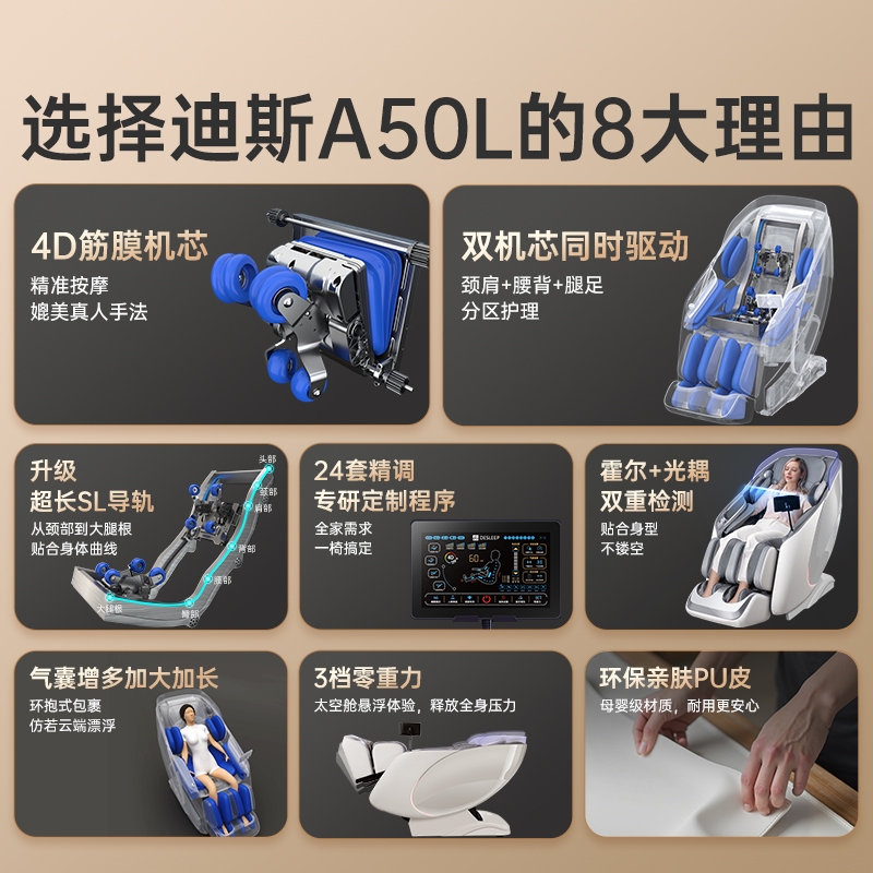 迪斯 4D双机芯按摩椅家用全身按摩椅DE-A50L