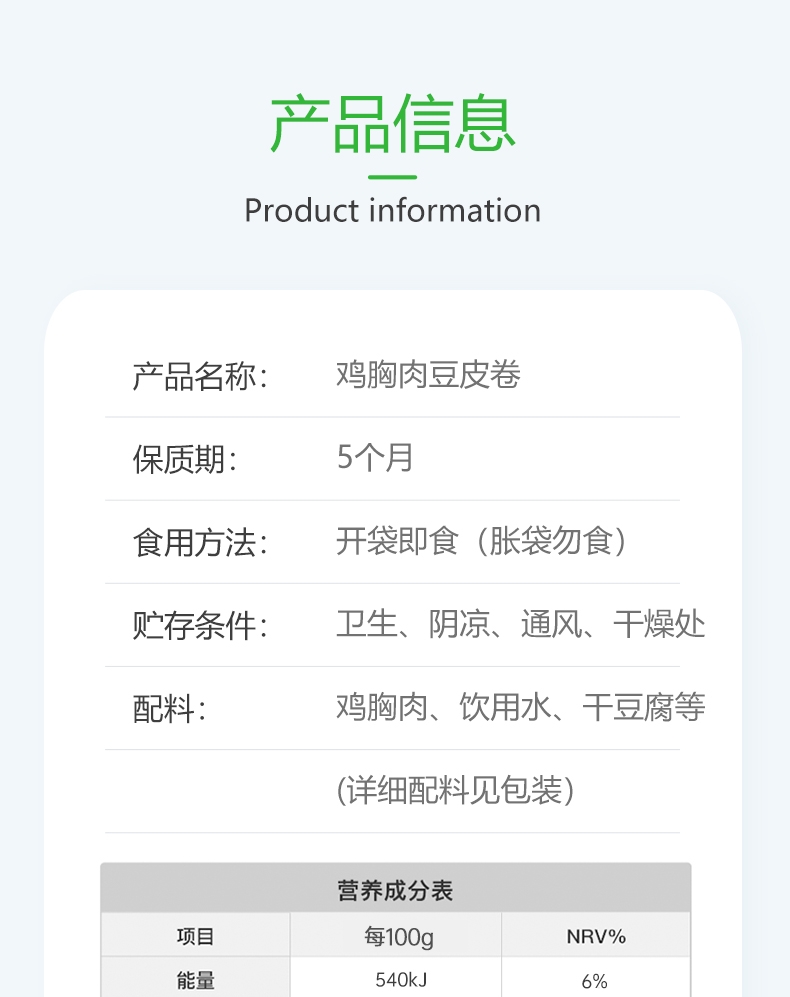 配置清单:哈尔香鸡胸肉豆皮卷548g*1袋