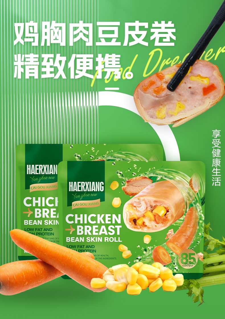 哈尔香 鸡胸肉豆皮卷548g
