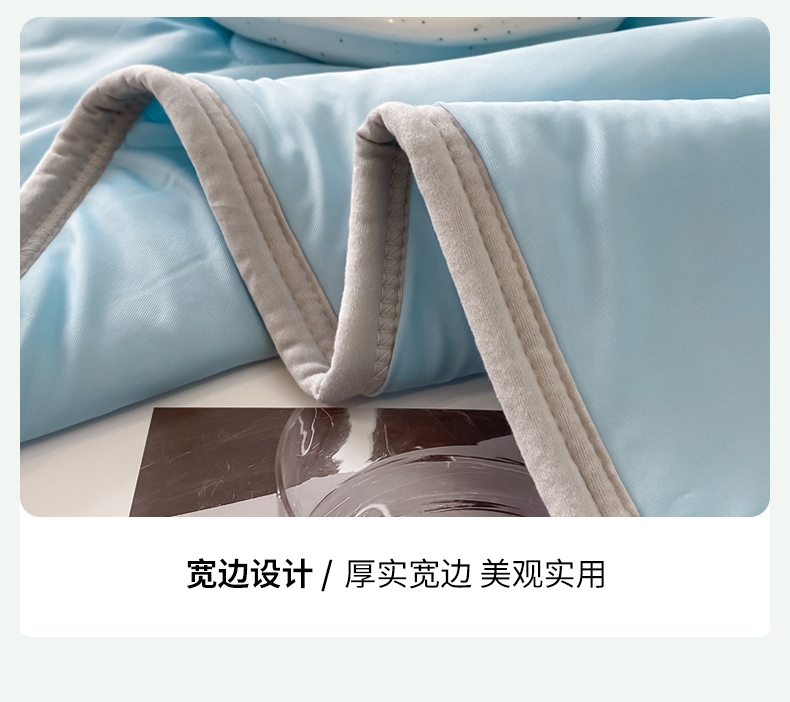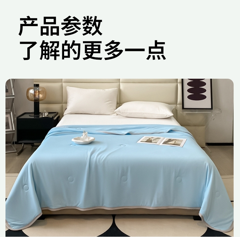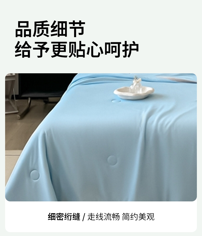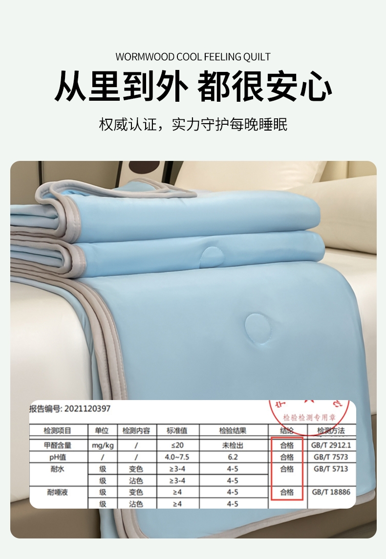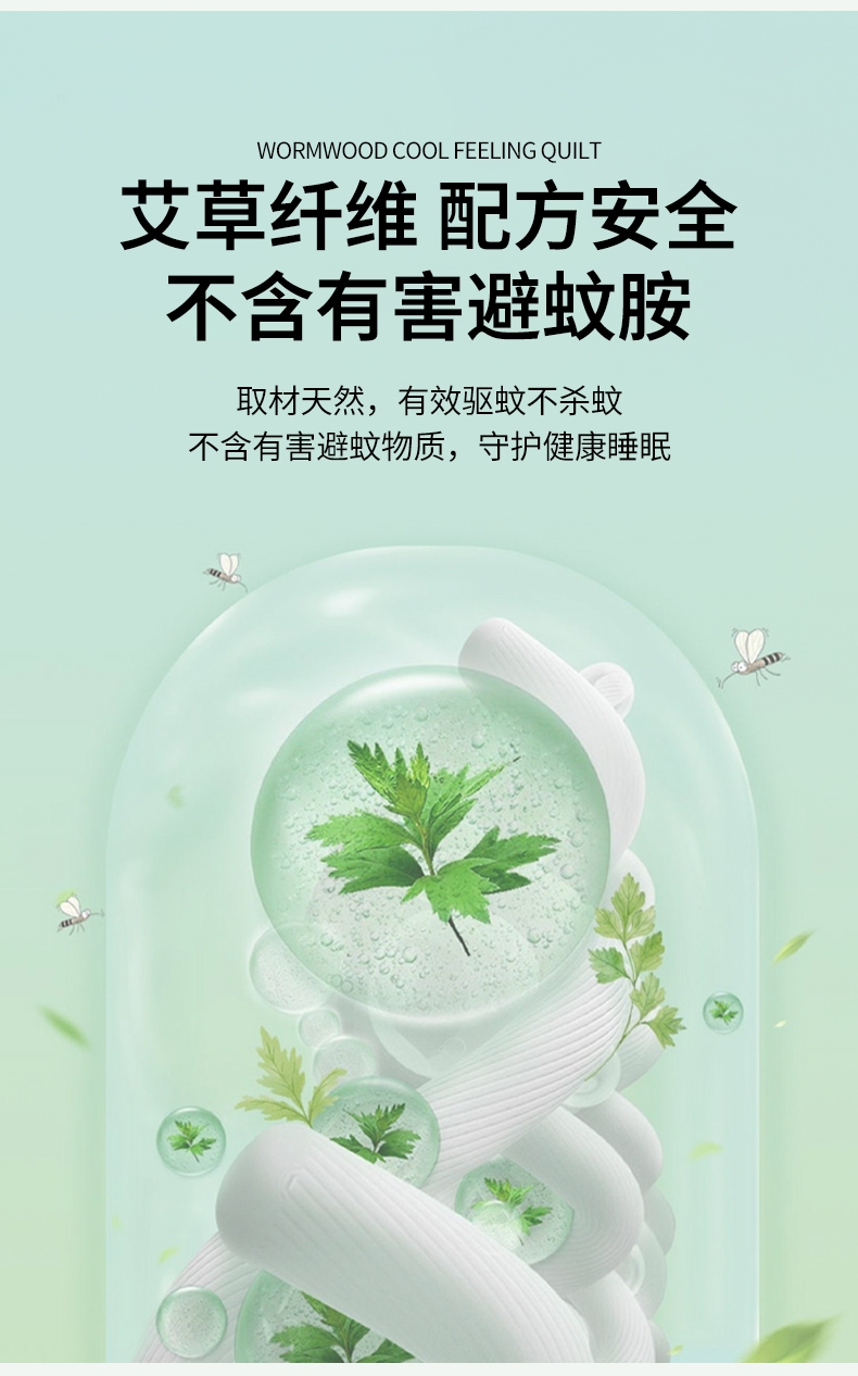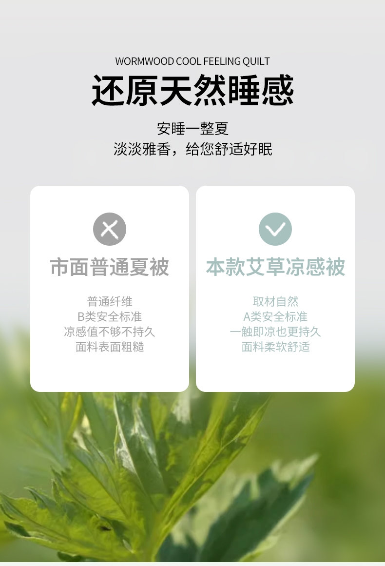 : 采用柔软凉感的凉感丝制作成的面料;艾草优质超细纤维,柔软亲肤 导湿透气;活性印染工艺 高级感十足压花工艺