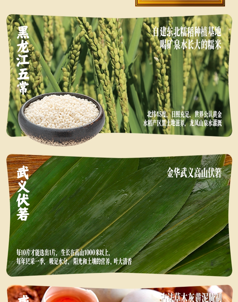 严格遵守食品安全标准,确保产品的卫生和安全。;采用传统手工制作工艺,确保粽子的形状、口感和风味符;选用优质糯米、新鲜肉类、海鲜等食材,确保粽子的口感