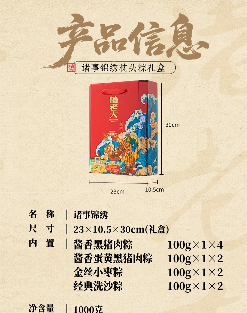 诸老大 预售诸事锦绣枕头粽礼盒1000克