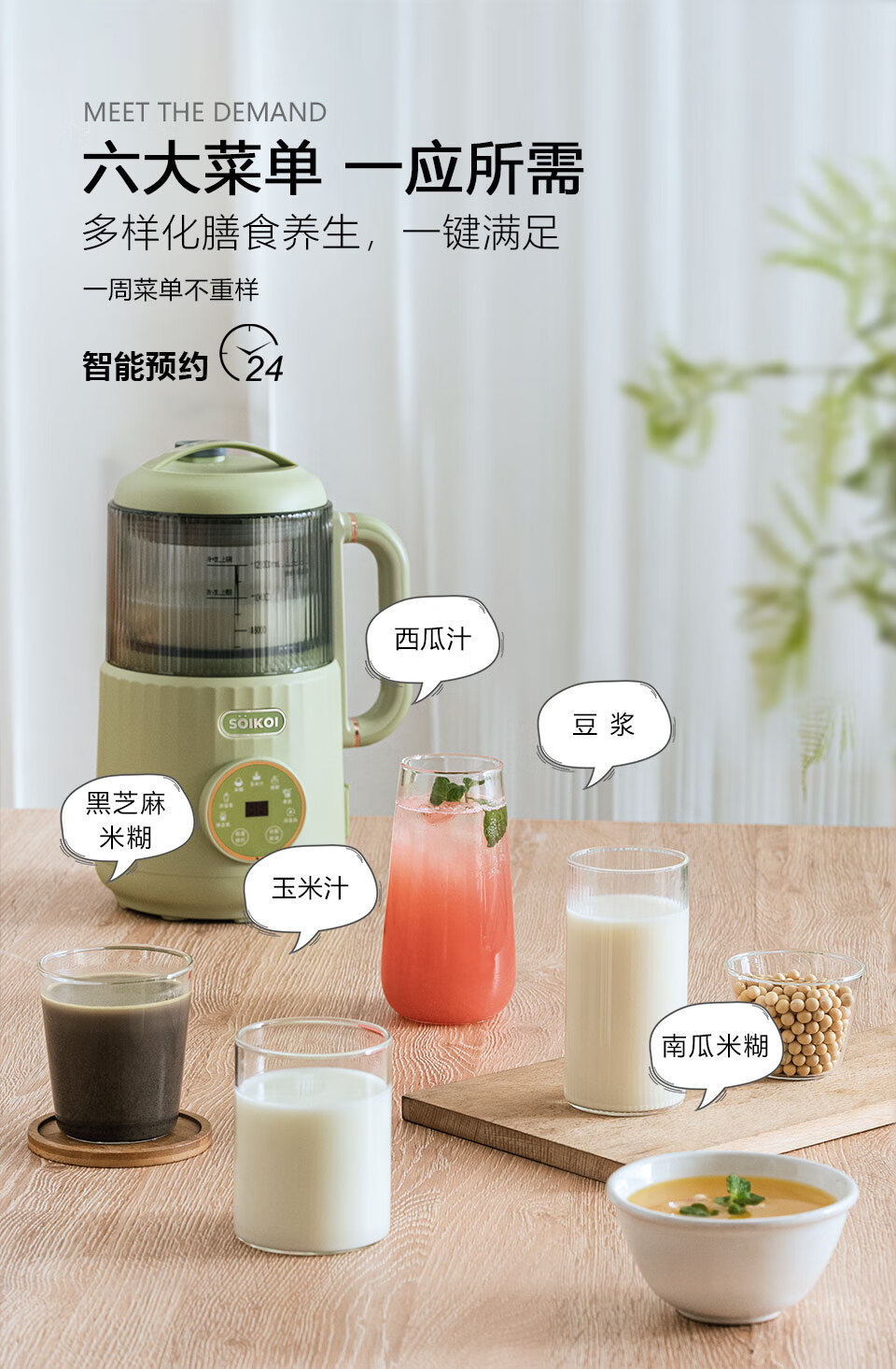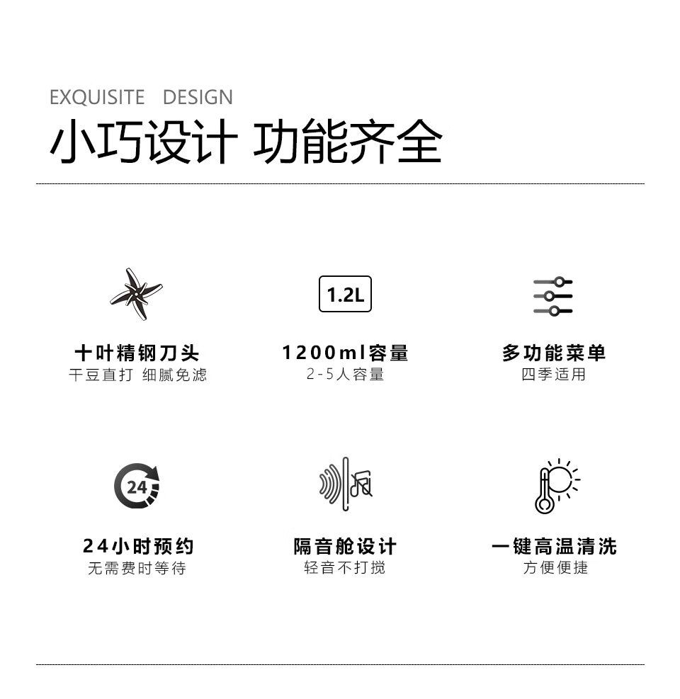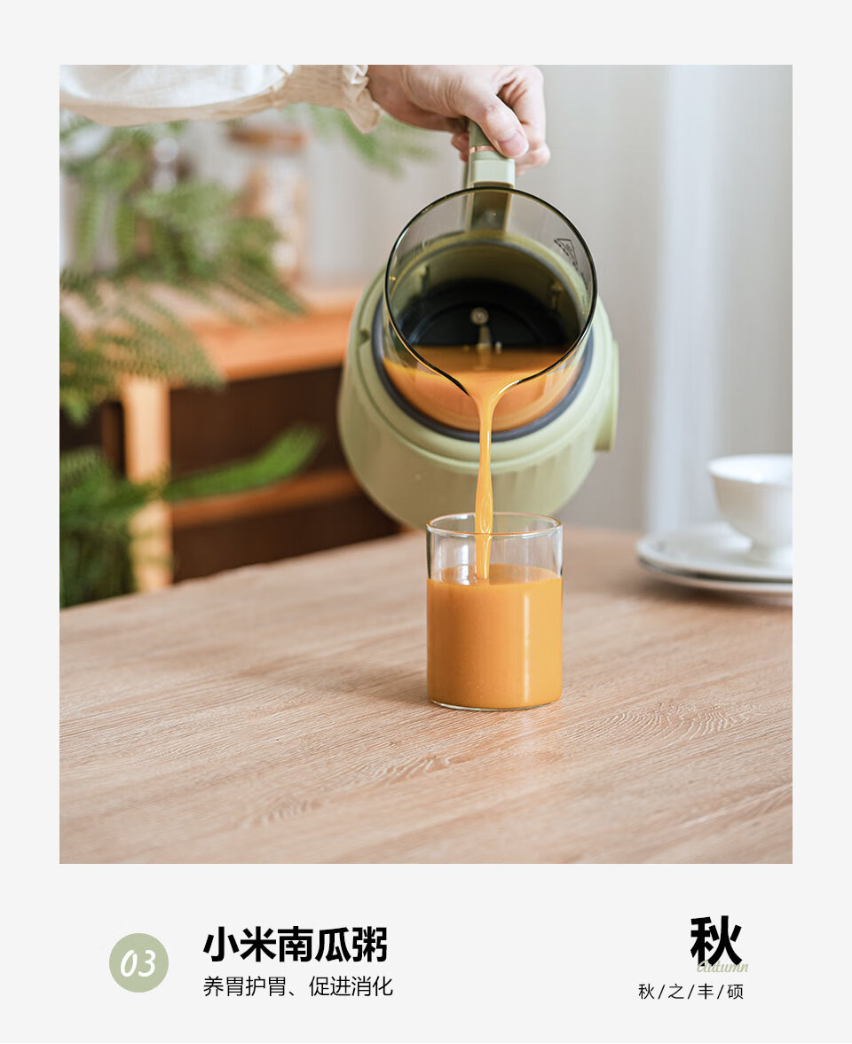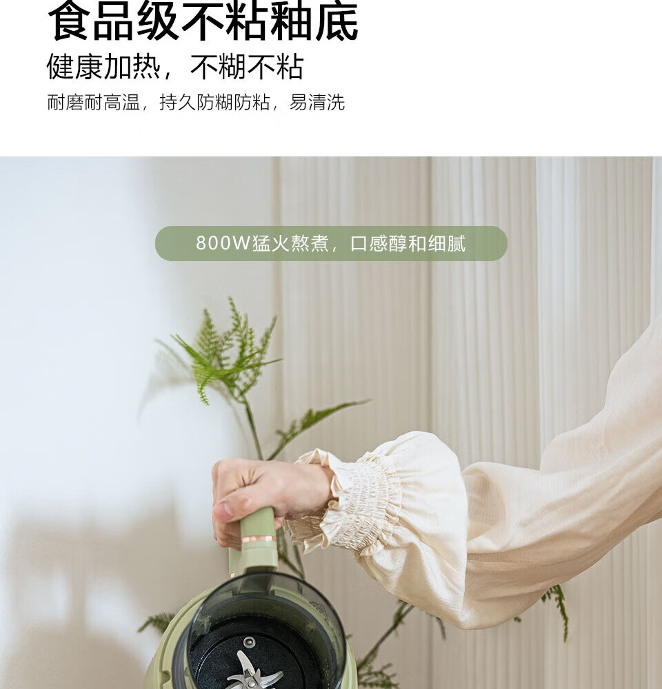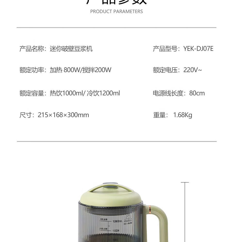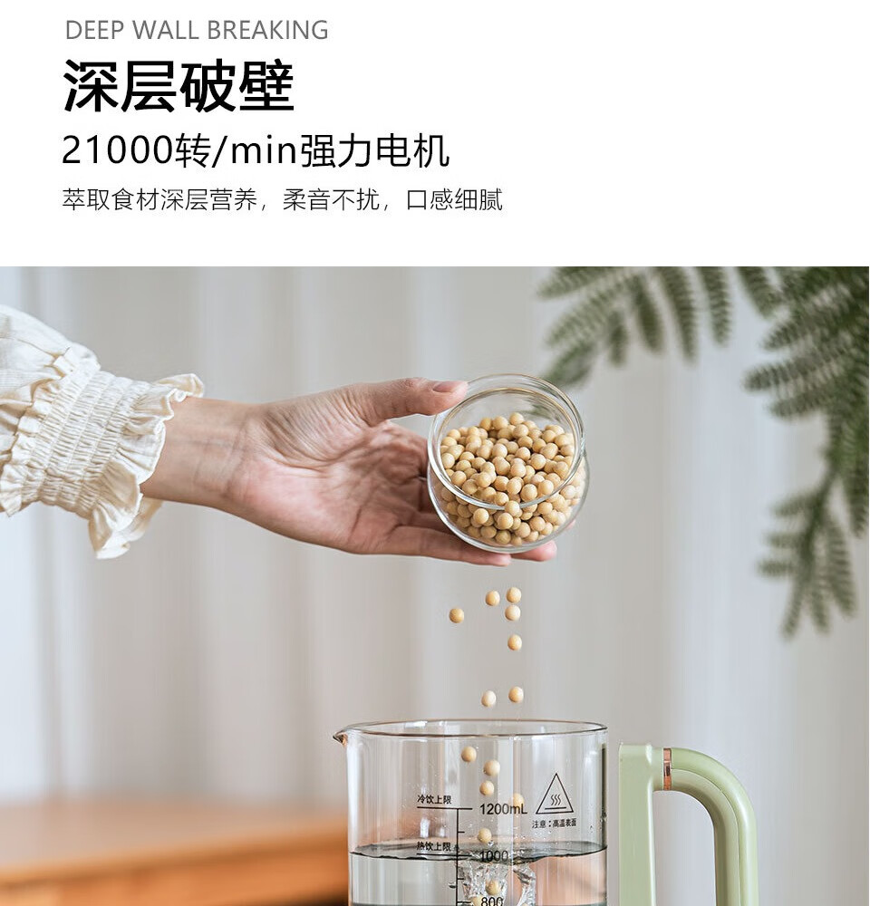 一机多能:集豆浆、米糊、果汁等多种功能,替代多款;可视化杯体:高硼硅玻璃杯身+刻度线,食材熬煮过程可;智能易操作:预设程序一键启动,支持预约和自动清洗,