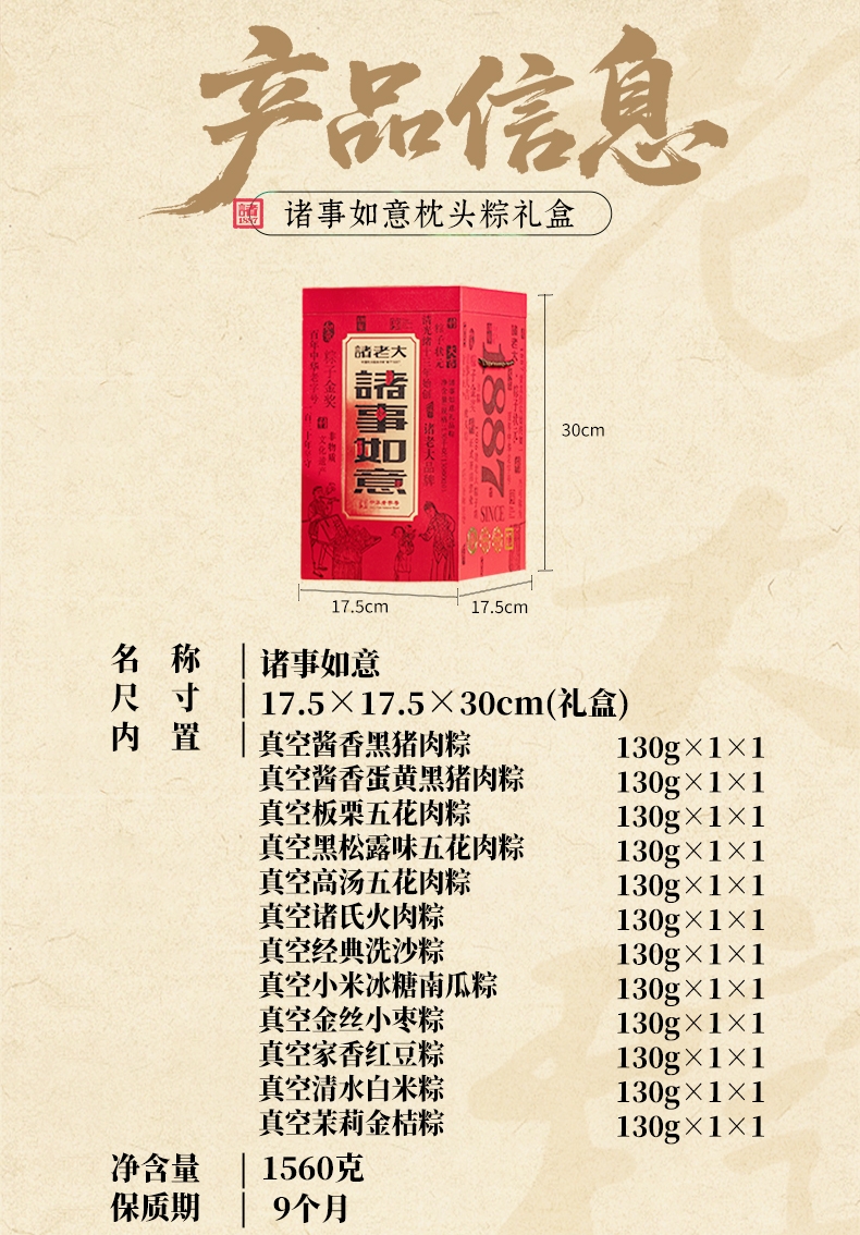 诸老大 预售诸事如意枕头粽礼盒1560g