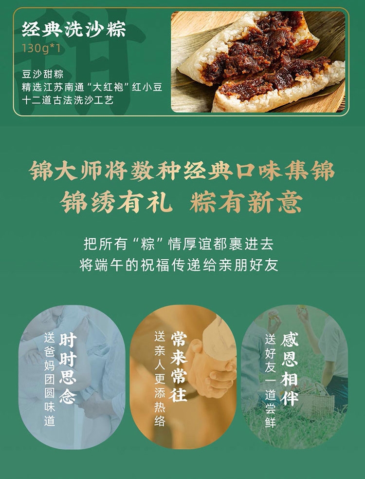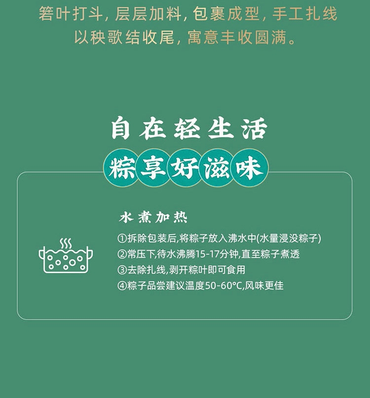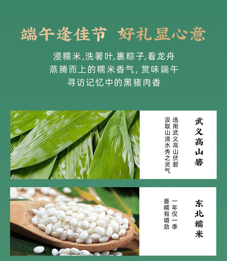 严格遵守食品安全标准,确保产品的卫生和安全。;采用传统手工制作工艺,确保粽子的形状、口感和风味符;选用优质糯米、新鲜肉类、海鲜等食材,确保粽子的口感