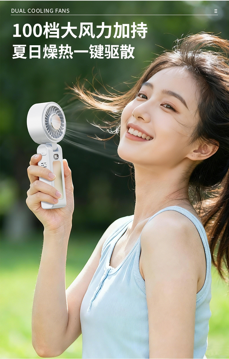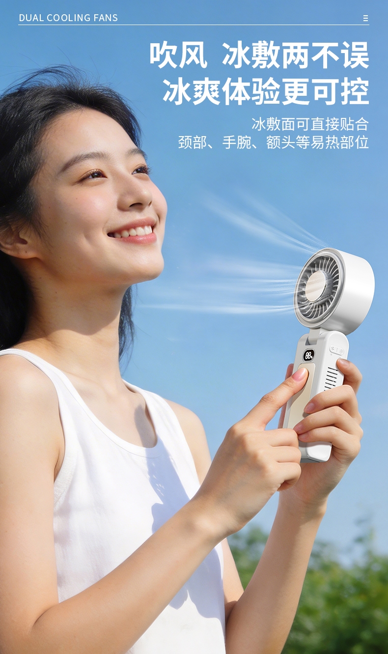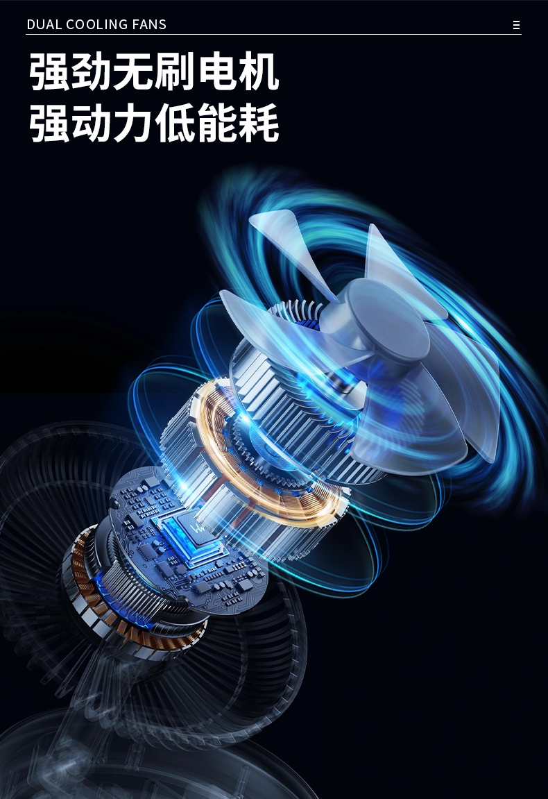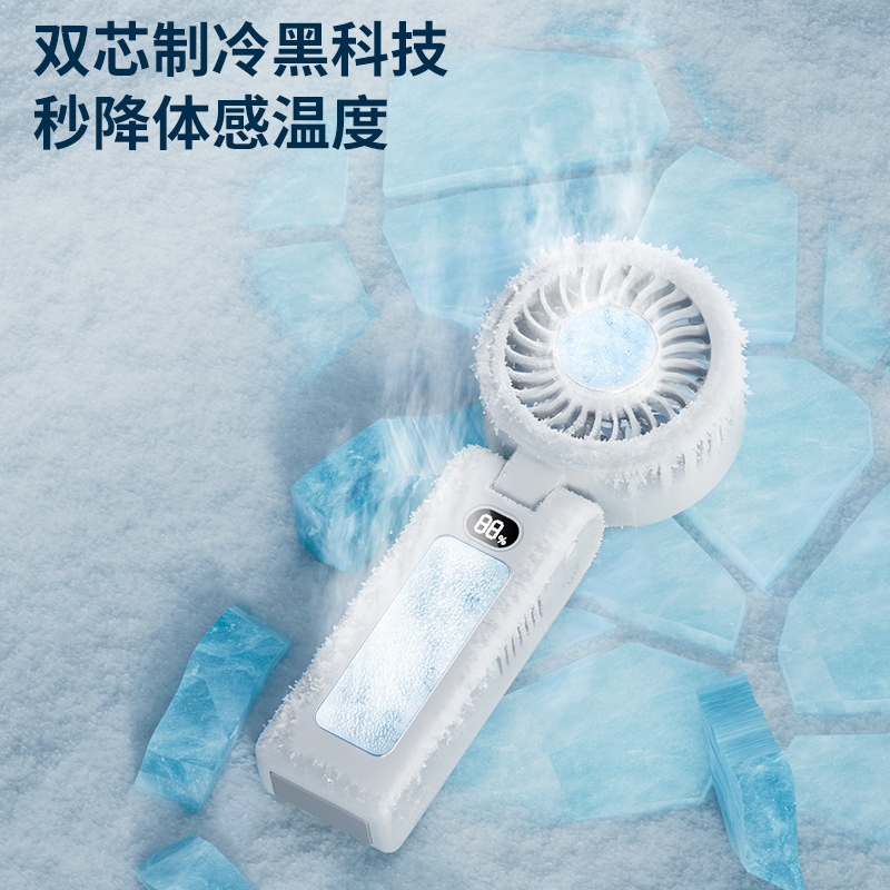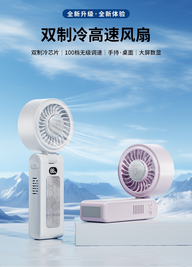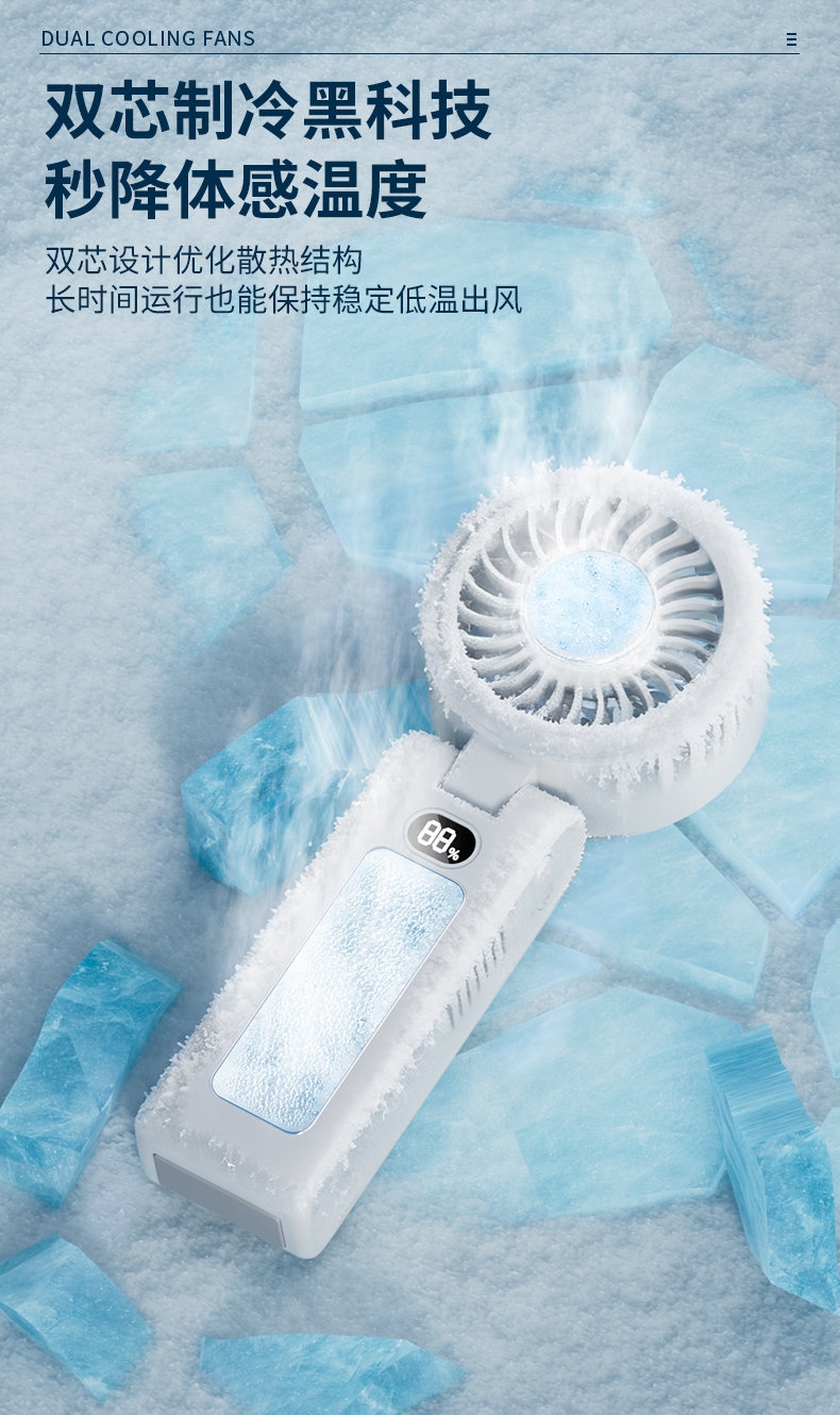 双制冷芯片,冰感直吹;100 档无级调速,风感自由定制;大屏数显,电量一目了然
