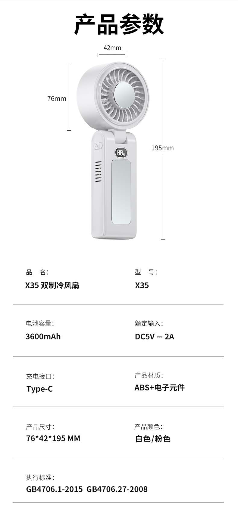 产品尺寸:76*42*195mm