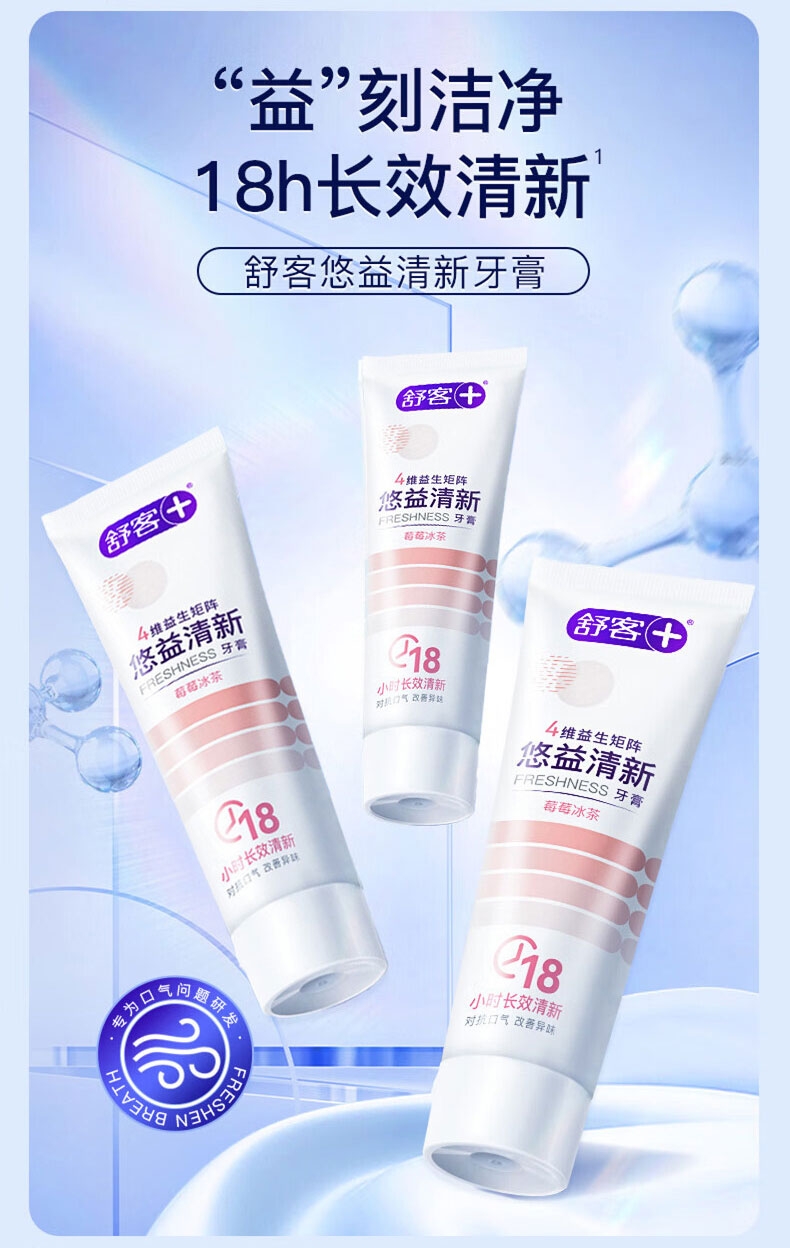 配置清单:三生花精油香氛洗发露(荧亮修护)500ml 三生花精油香氛护肤沐浴露(风中玫瑰香)500ml 三生花精油香氛高光发膜280ml 舒客悠净清新益生菌牙膏(莓莓冰茶)120g 舒客炭丝能量牙刷2支 礼品袋