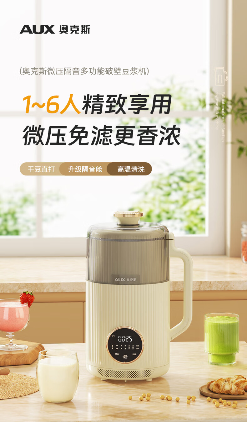 奥克斯 破壁全自动免煮低音豆浆机APB-15AZX-556A
