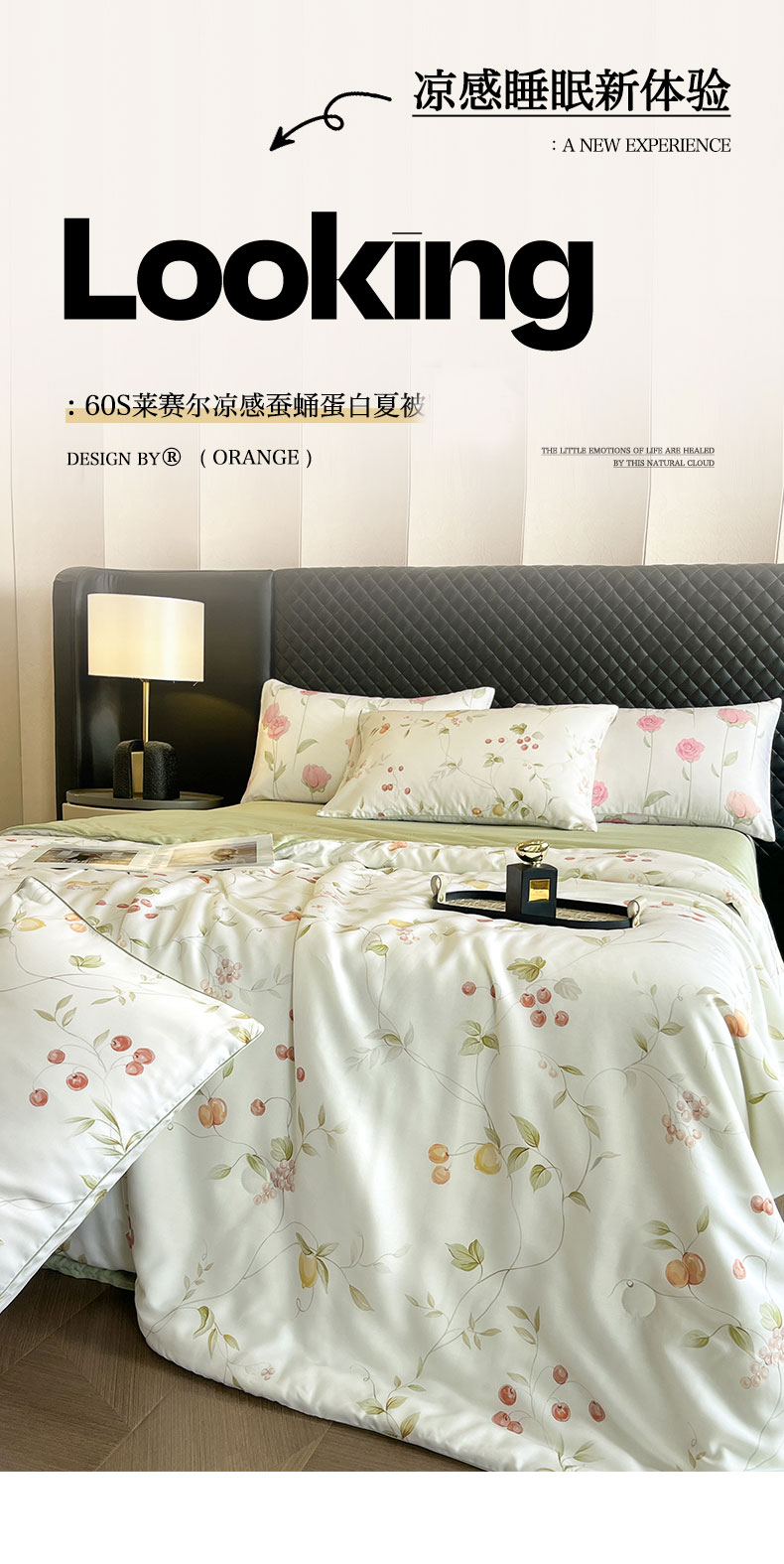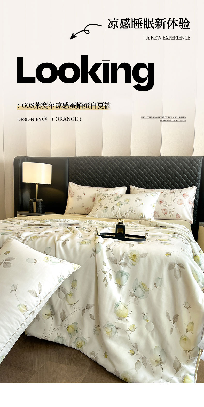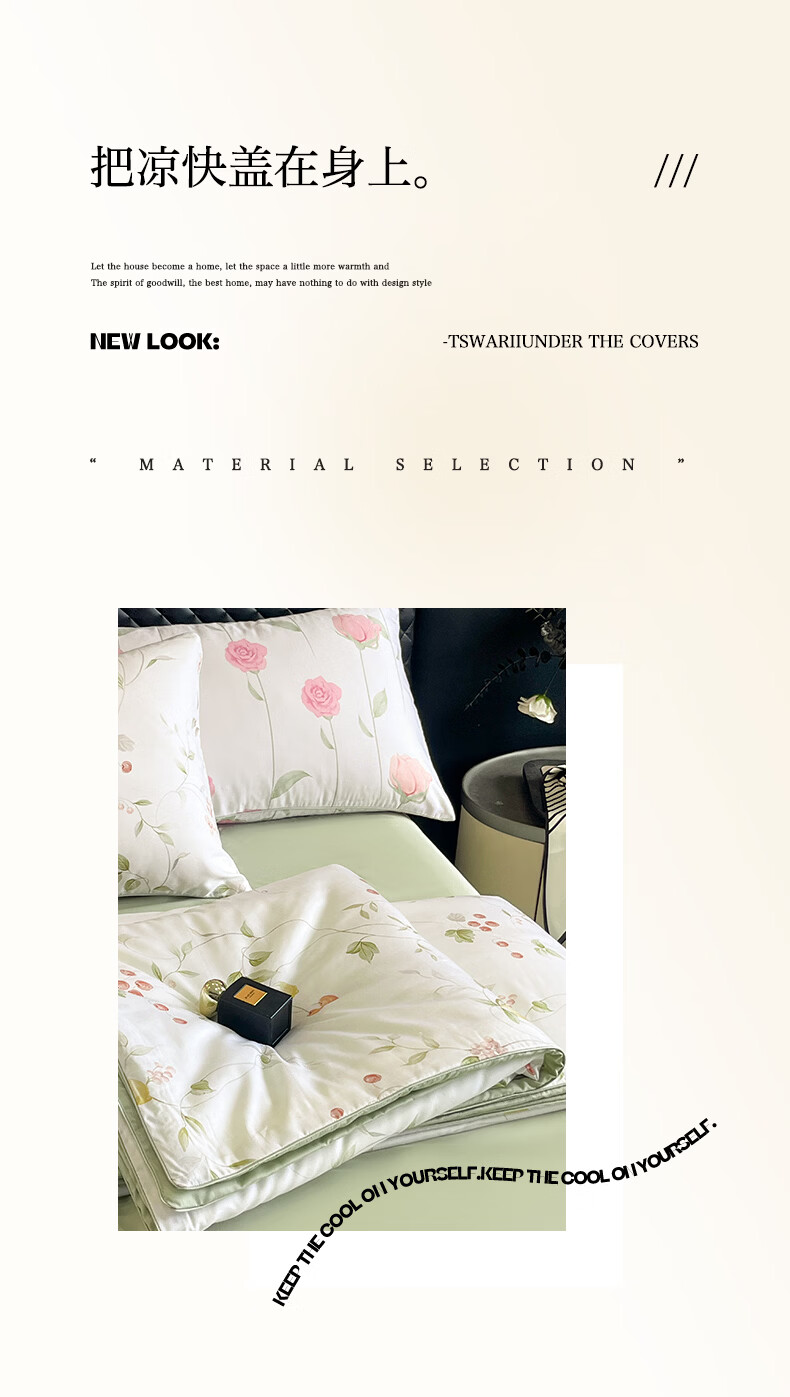 面料采用莱赛尔纯植物天然面料,贴服清爽,质感柔和,;与肌肤无间接触,整个夏季的清凉保障。蚕蛹蛋白; 富含18种人体所需氨基酸被称为“人体的第二肌肤”;睡中滋养悄然变美。