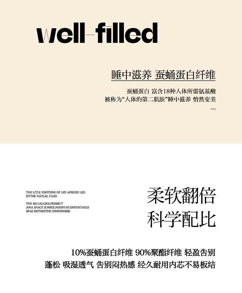 填充::10%蚕蛹蛋白纤维+90%聚酯纤维