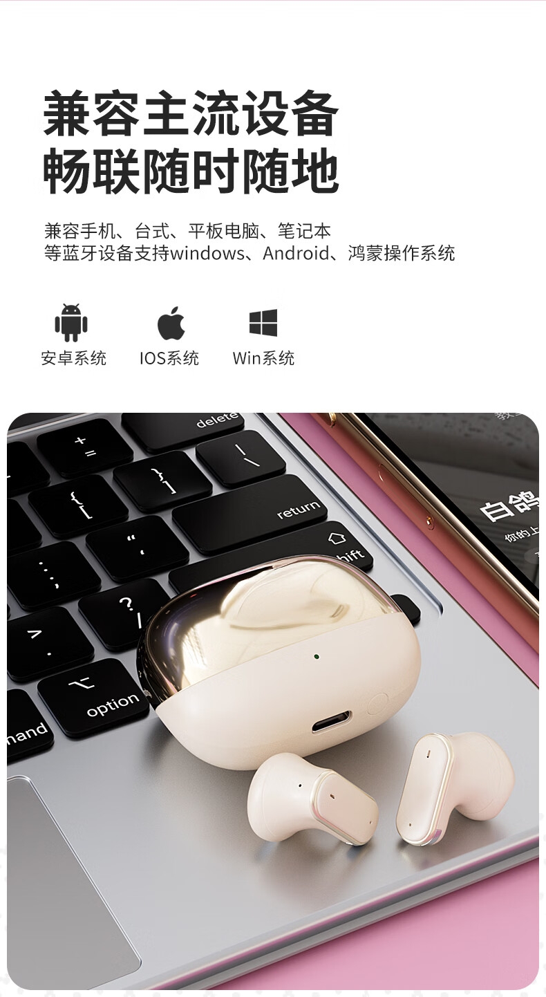 触摸按键操作,操作更便捷;轻盈小巧,入耳更舒适;强芯片,连接更稳定