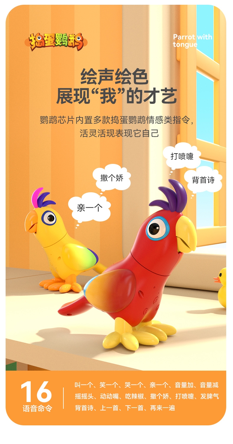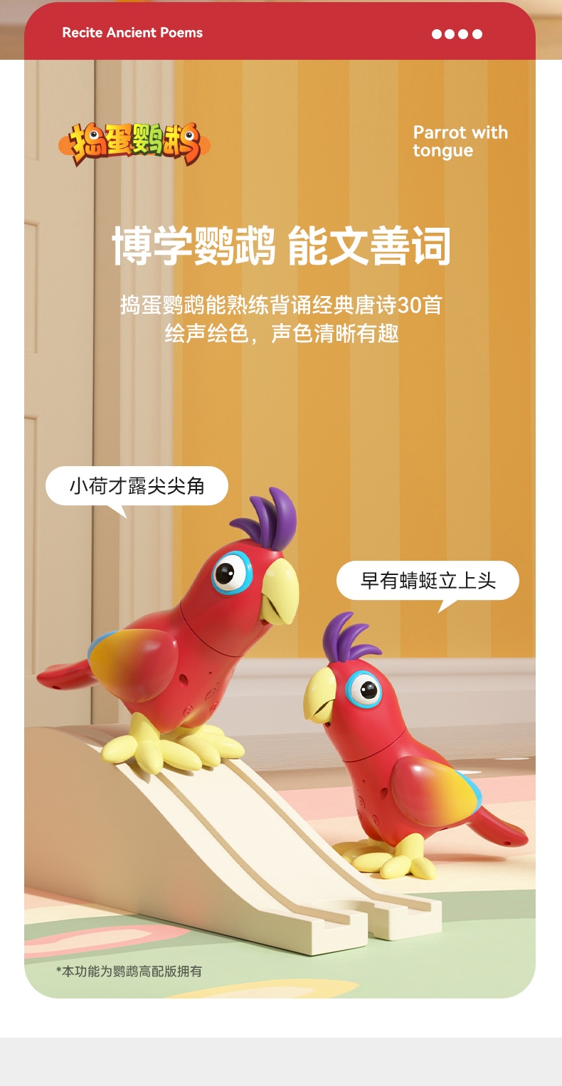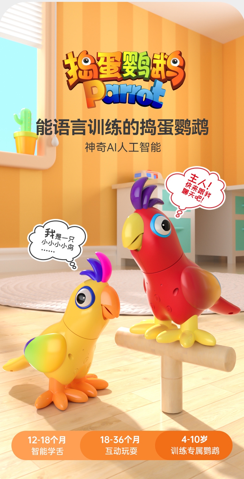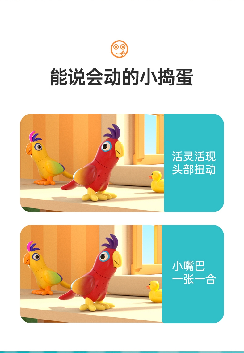 产品型号:JM14-捣蛋鹦鹉 ,主要材质:ABS塑胶+电子元件,适用年龄:3个月以上