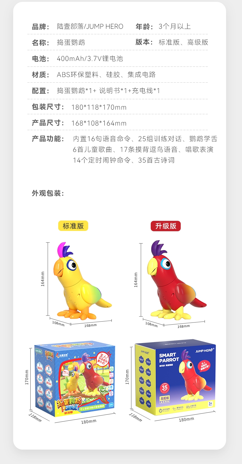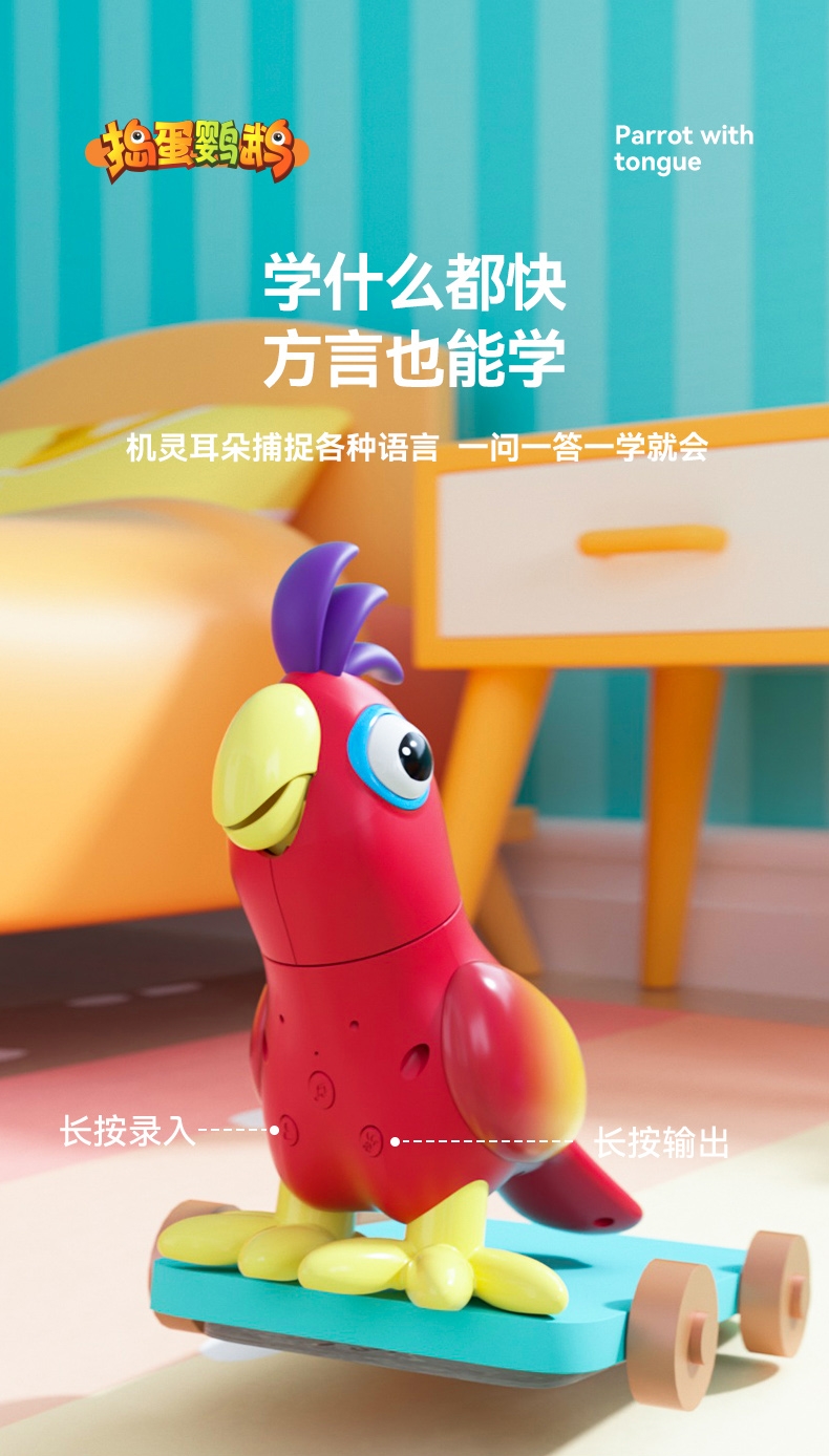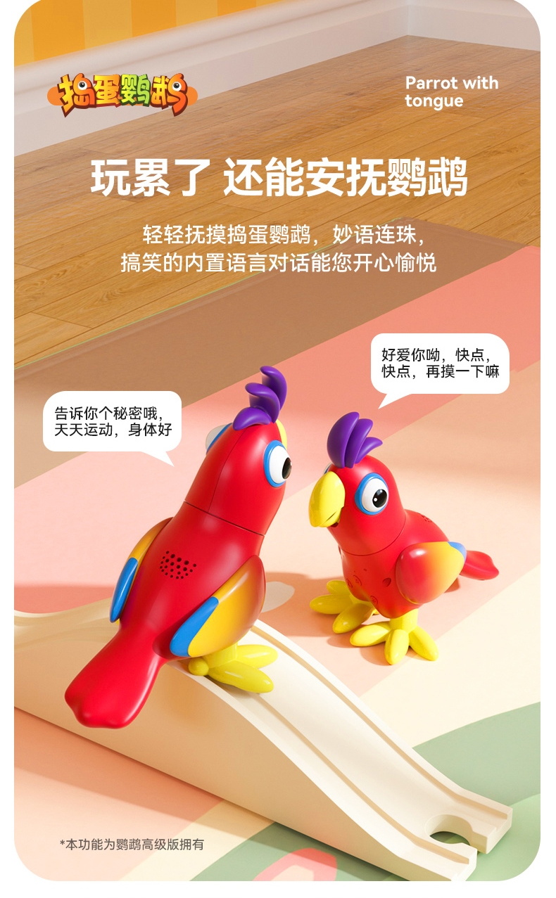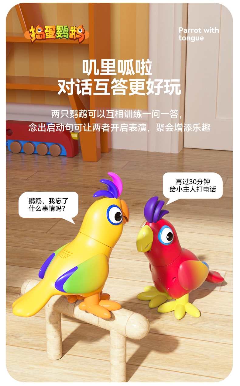 产品型号:JM14-捣蛋鹦鹉 ,主要材质:ABS塑胶+电子元件,适用年龄:3个月以上