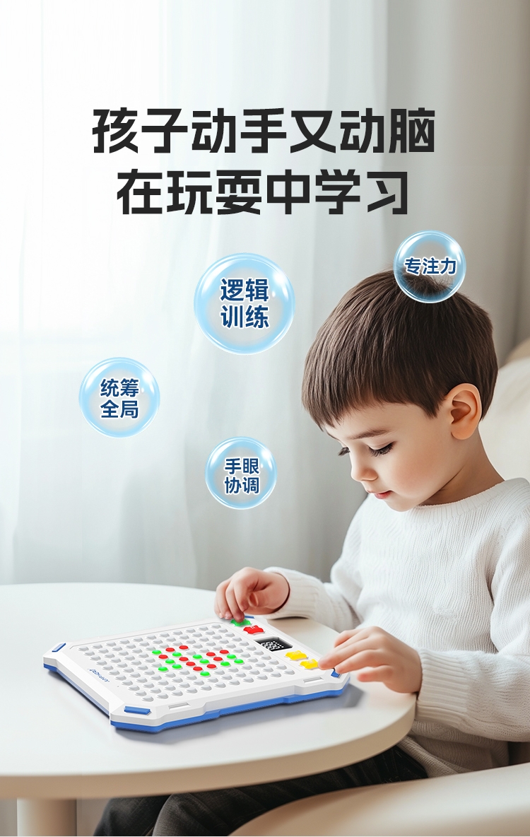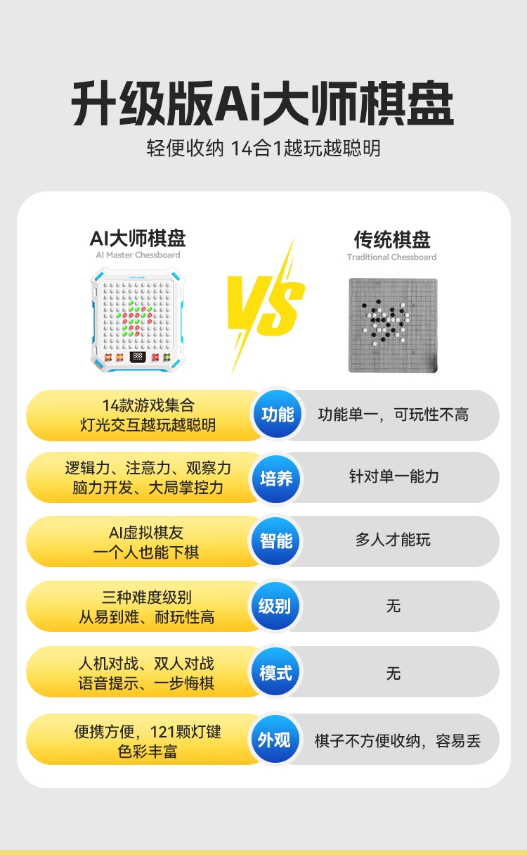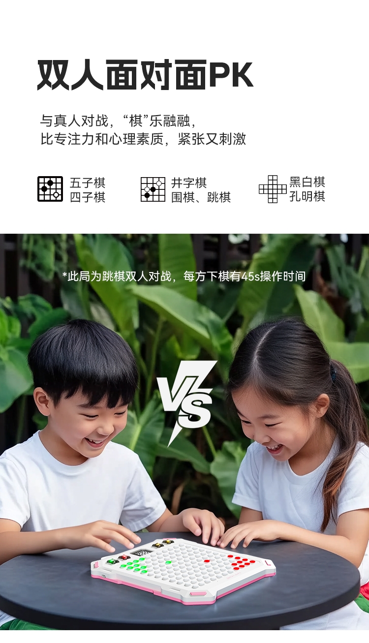 思维训练 AI大师棋盘:14款智力游戏,助力思维训;14种棋类玩法:五子棋、四子棋、围棋、跳棋;阶梯式科学训练,循序渐进,从易到难