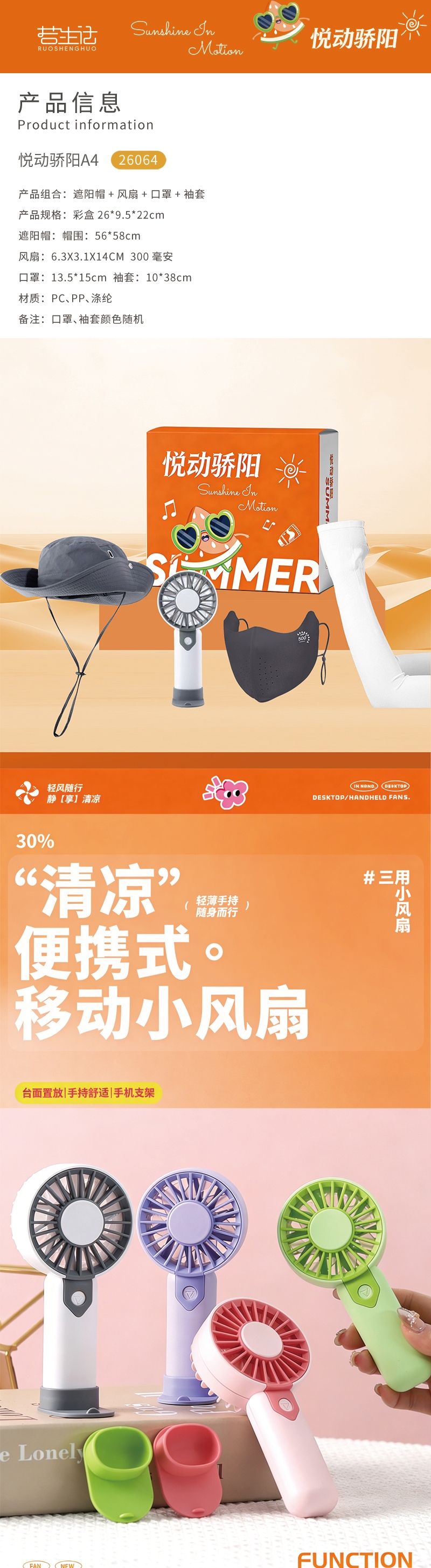 若生活 夏日清凉帽子口罩风扇袖套组合26064