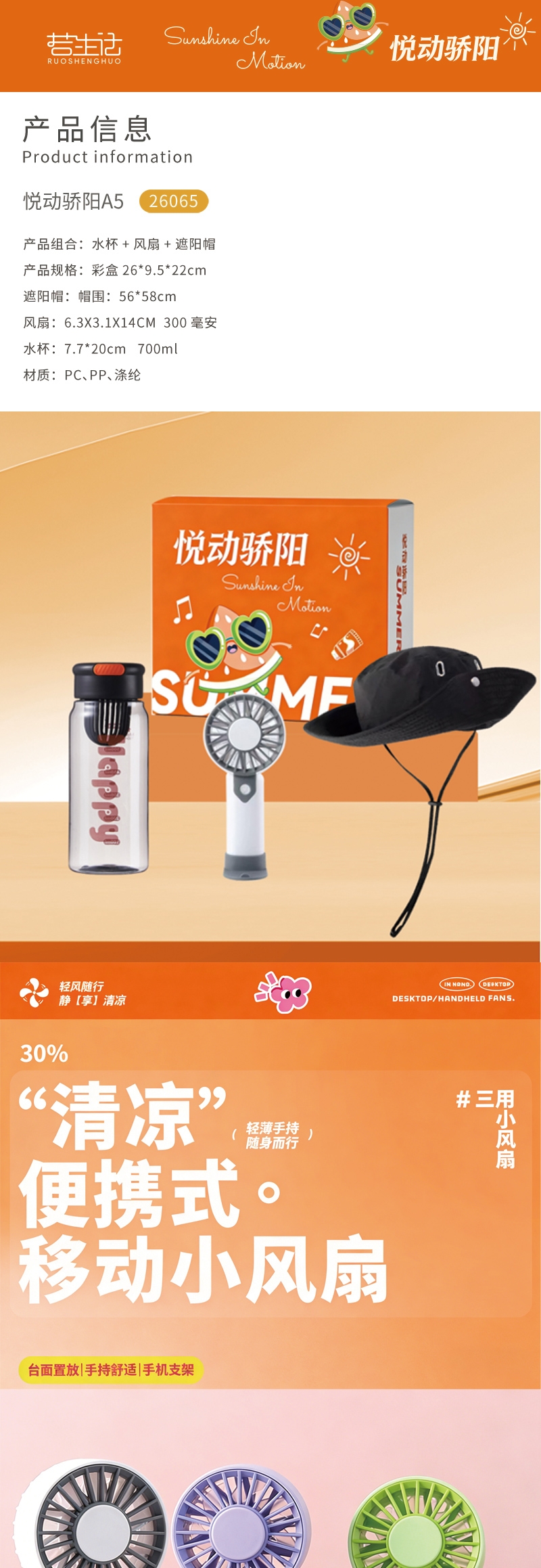 若生活 夏日清凉水杯风扇帽子组合套装26065