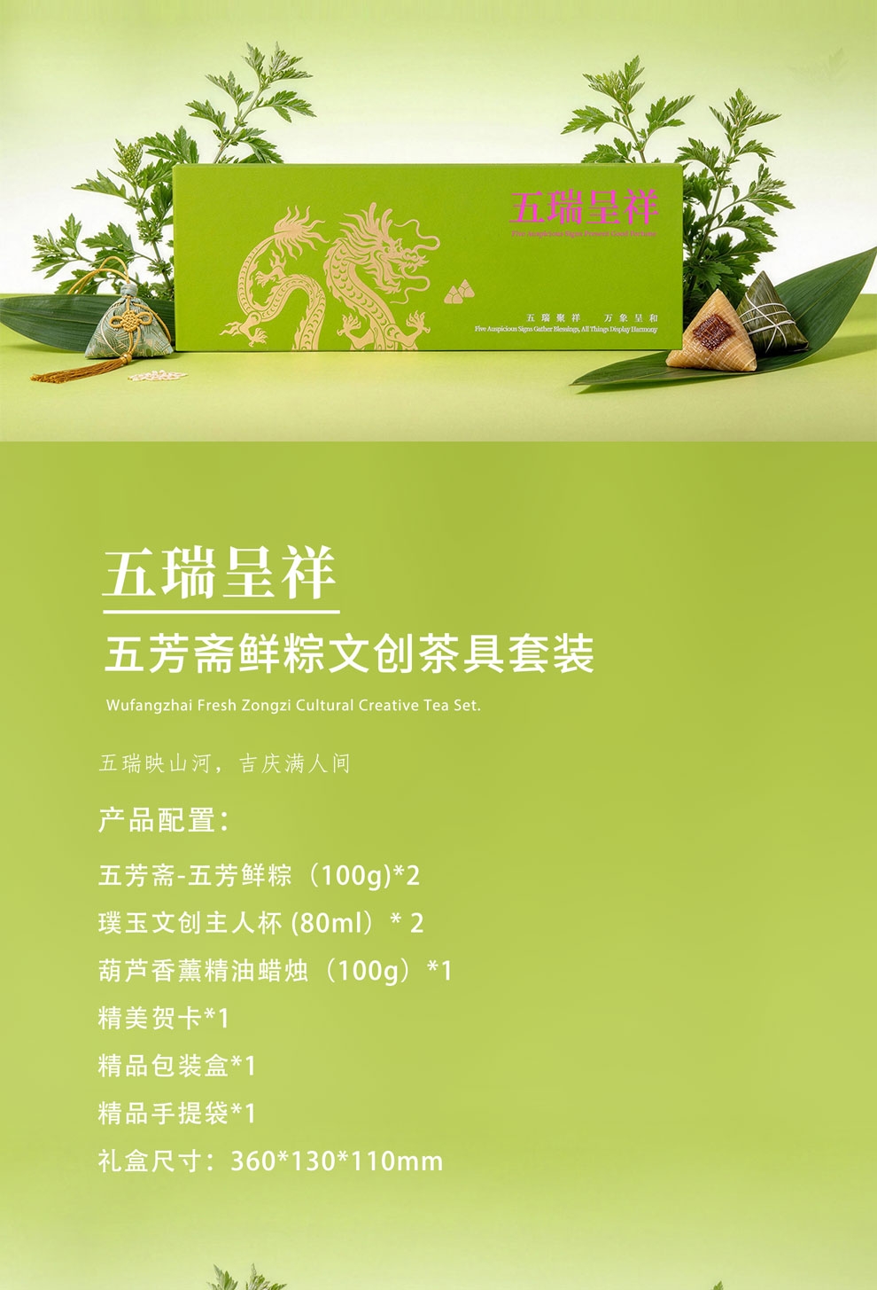 配置清单:五芳斋-五芳鲜粽(100g)*2璞玉文创主人杯(80ml)*2葫芦香薰精油蜡烛(100g)*1精美贺卡*1 精品包装盒*1 精品手提袋*1