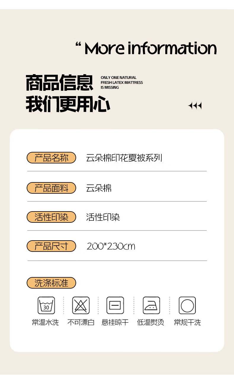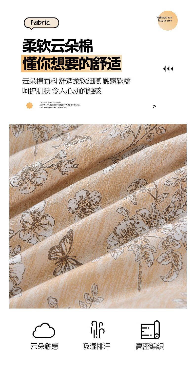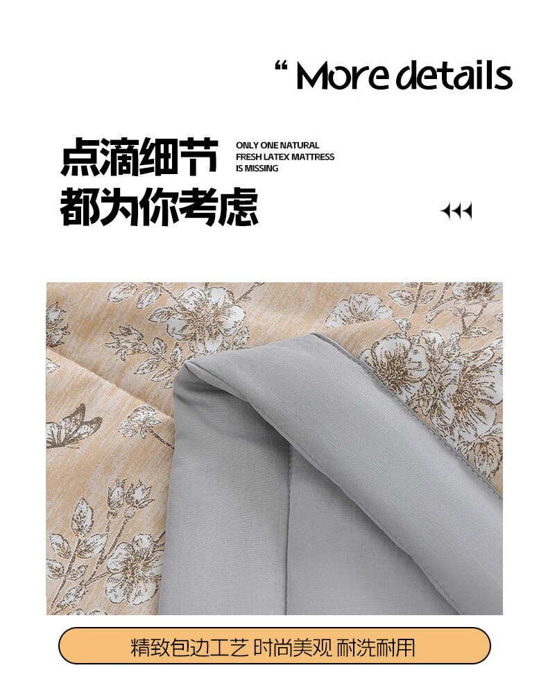 水洗棉面料,质感柔软,手感细腻,亲肤无刺激洁净度高;填充采用整张纤维填充,吸湿透气,;保暖舒适,呵护美好睡眠。