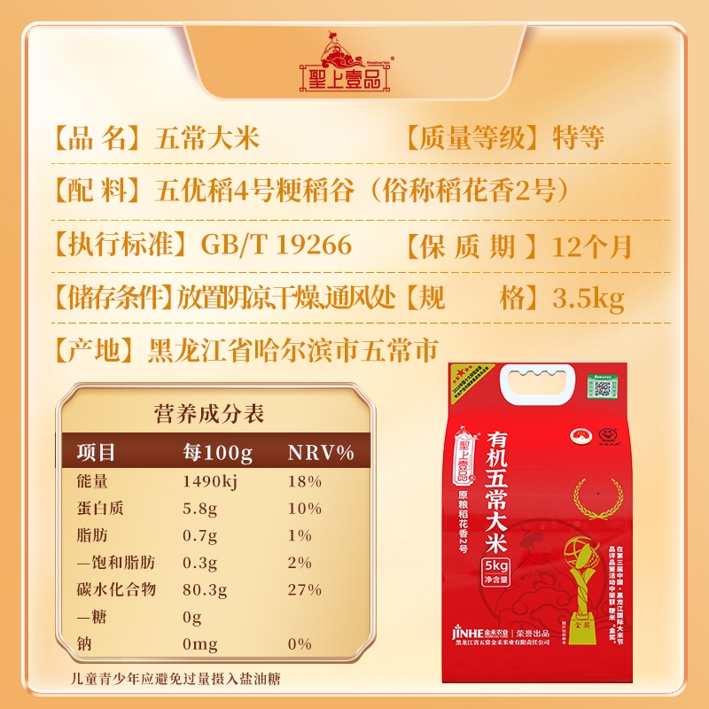 聖上壹品 有机原粮稻花香2号03.08.101