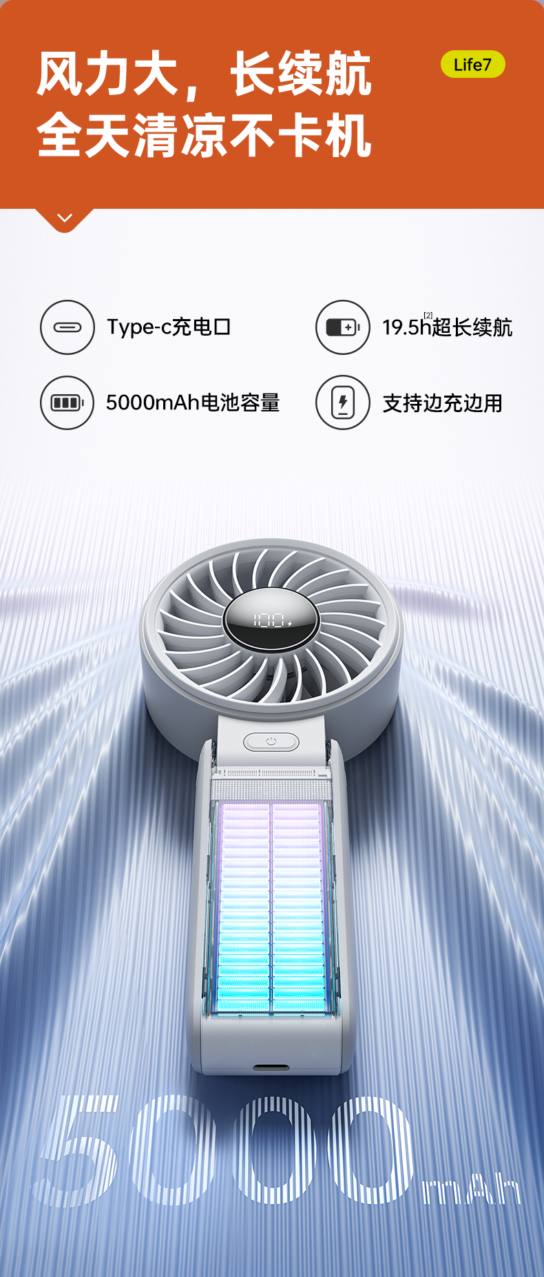 几素 手持风扇Life7-5000mAh