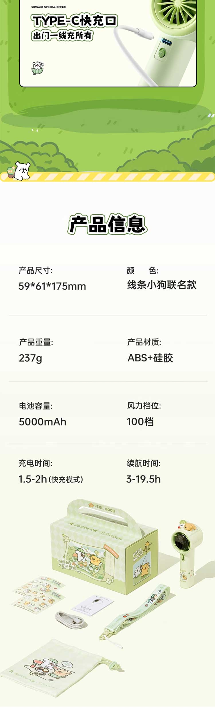 线条小狗联名款;无极变速;5000mAh超大电池容量