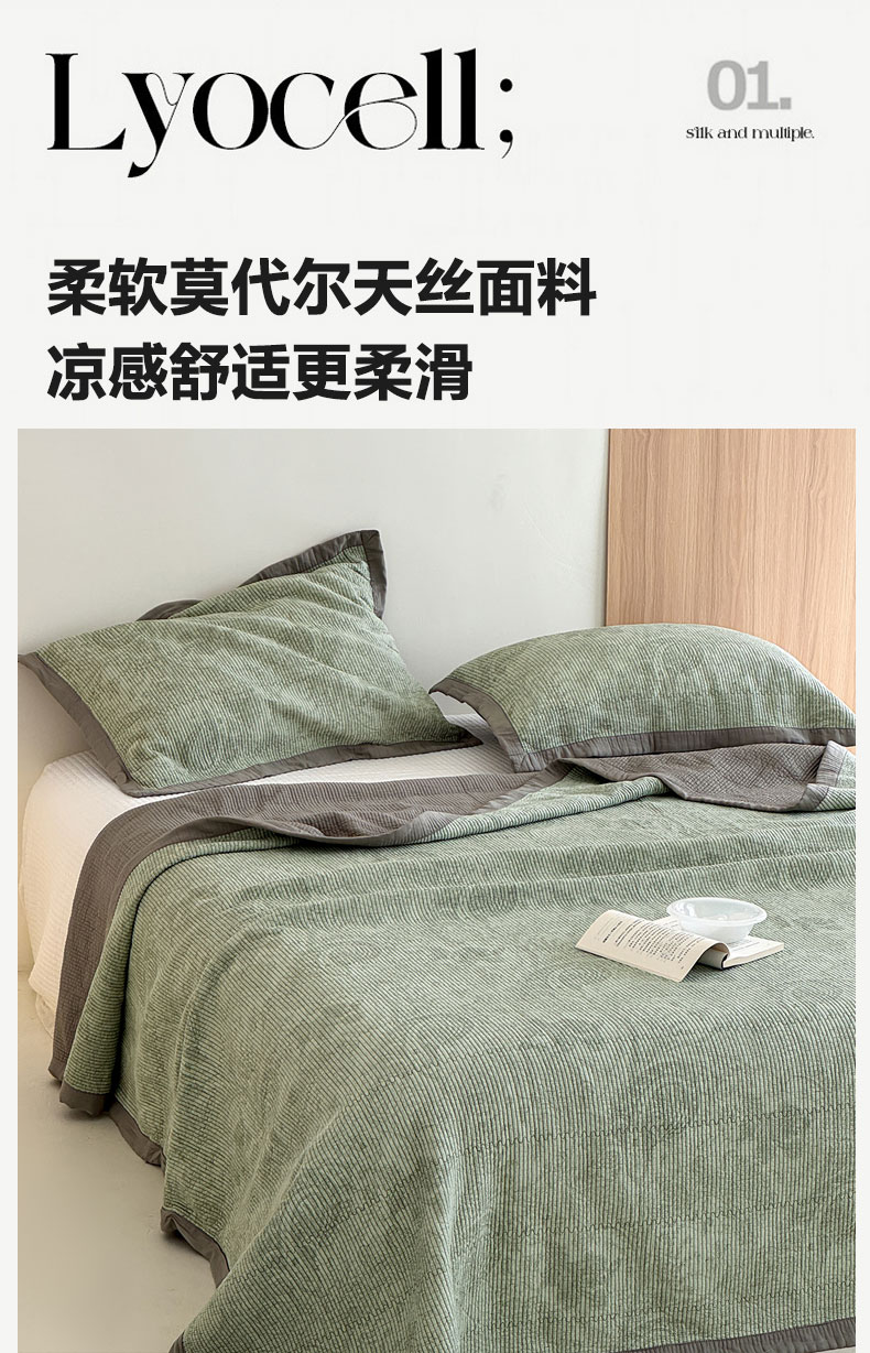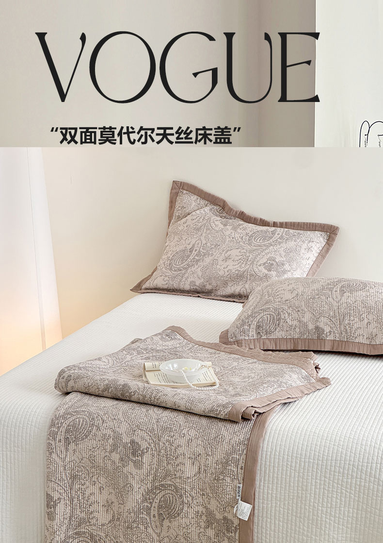 百丽安娜 新款莫代尔天丝床盖凉席三件套