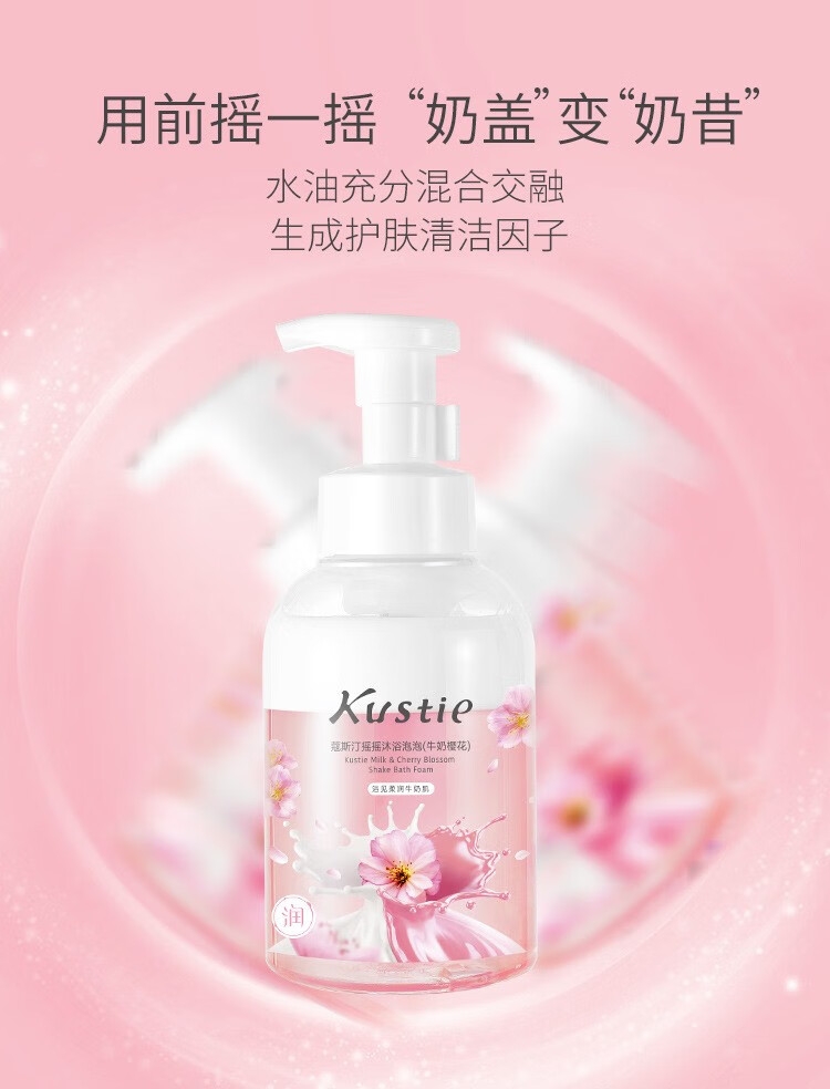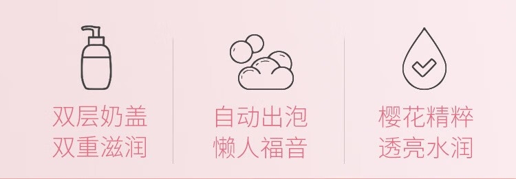 强韧修护洗发水:修护受损发丝,强韧发根,去屑控油;牛奶樱花沐浴泡泡:绵密泡沫,温和清洁,留香持久;洗护合一,清爽舒适,香气高级