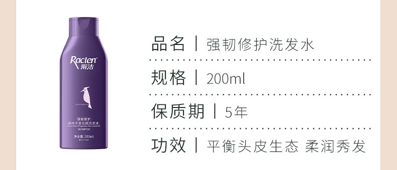 配置清单:雨洁森林木香去屑洗发水(强韧修护)200ml 蔻斯汀 摇摇沐浴泡泡(牛奶樱花)450ml