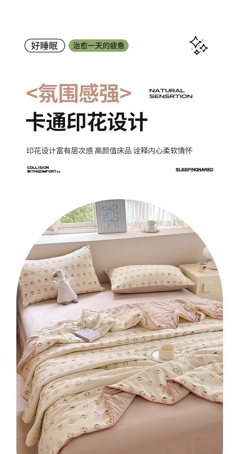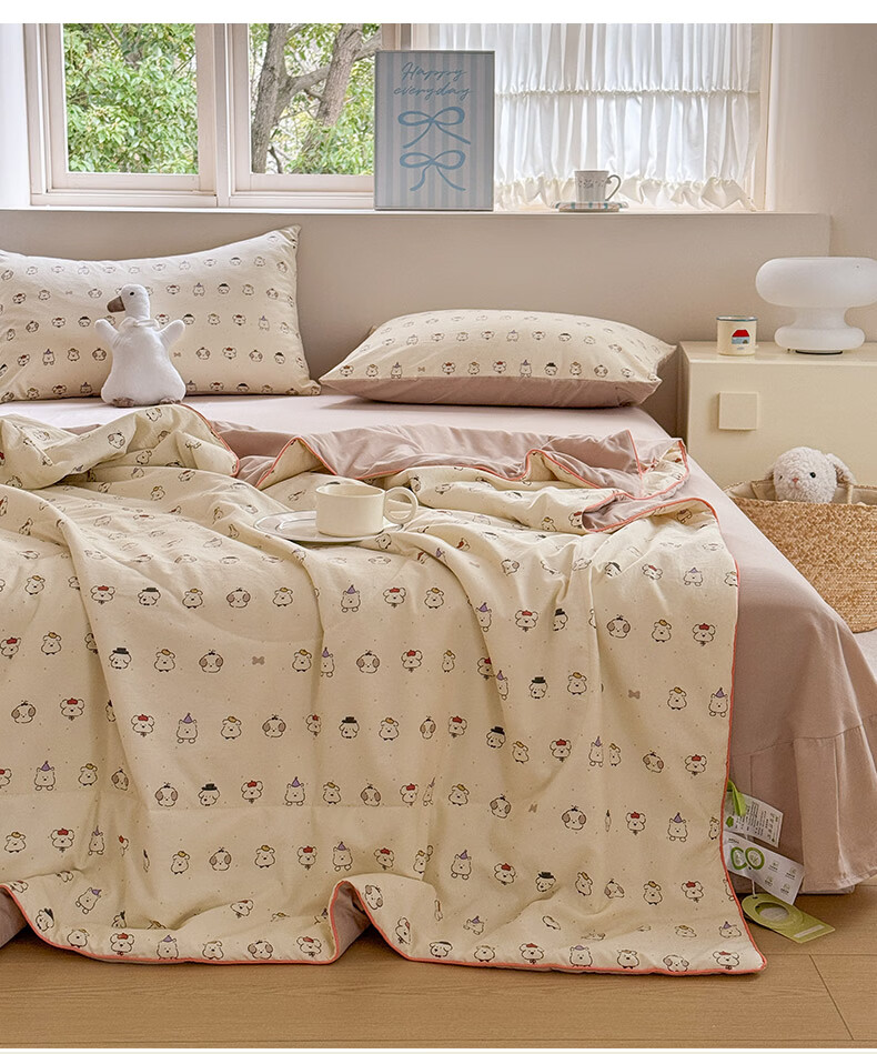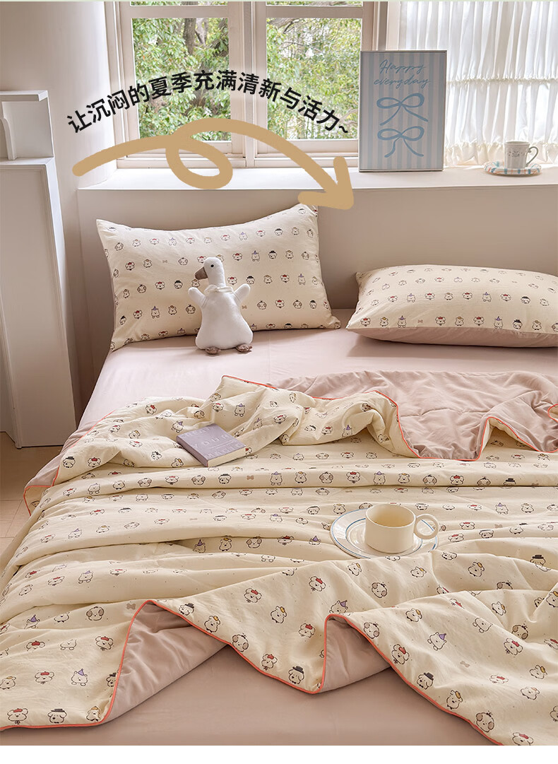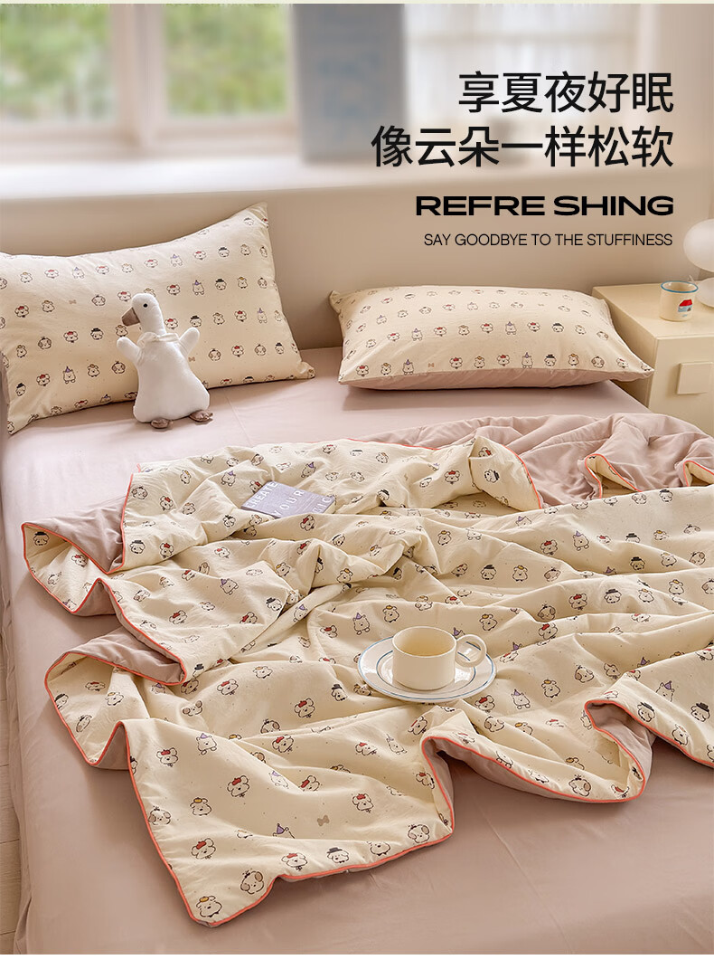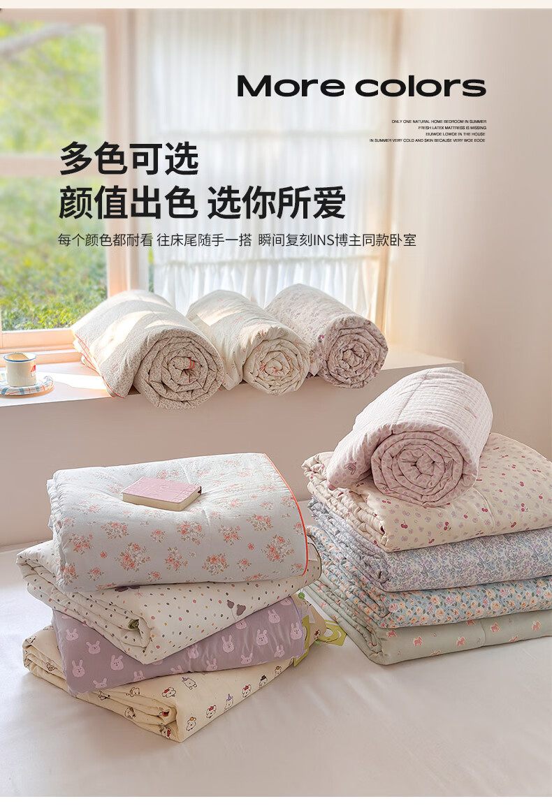 古法水洗棉面料,仿全棉的软糯触感,柔软蓬松;像云朵裹身,亲肤不扎身;清新治愈;颜值拉满,适配各种卧室风格;易打理不费心,抗皱