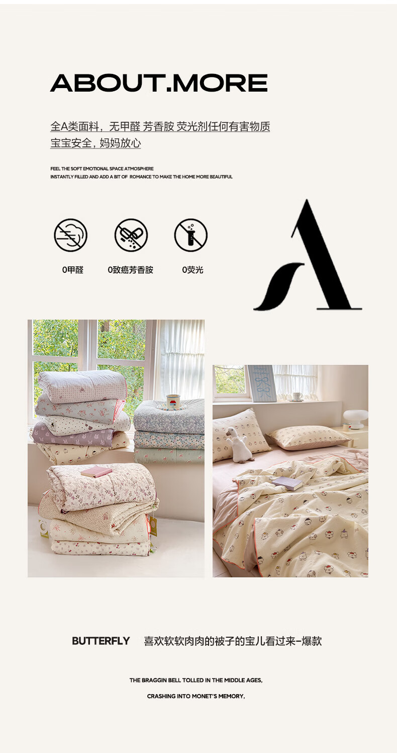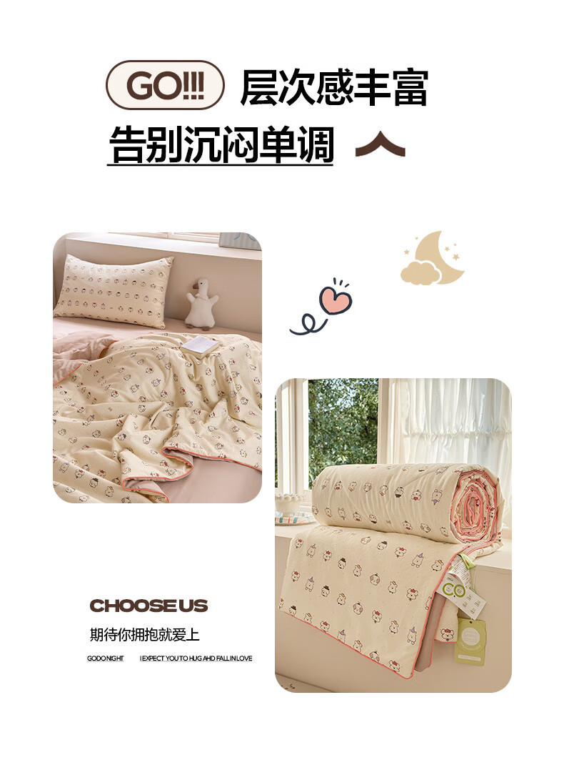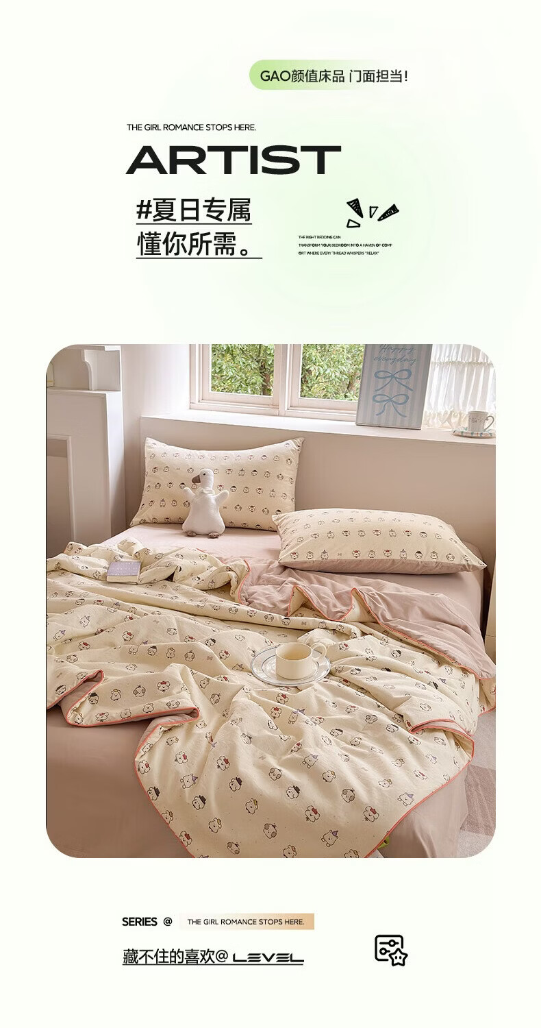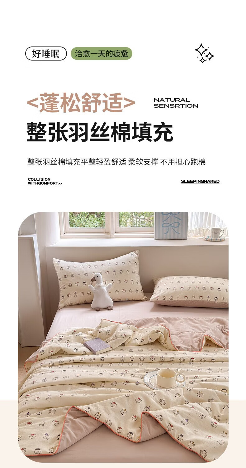 古法水洗棉面料,仿全棉的软糯触感,柔软蓬松;像云朵裹身,亲肤不扎身;清新治愈;颜值拉满,适配各种卧室风格;易打理不费心,抗皱
