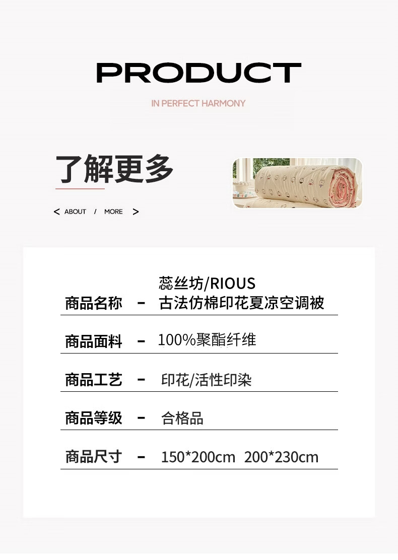 蕊丝坊 新款古法仿棉印花夏凉空调被