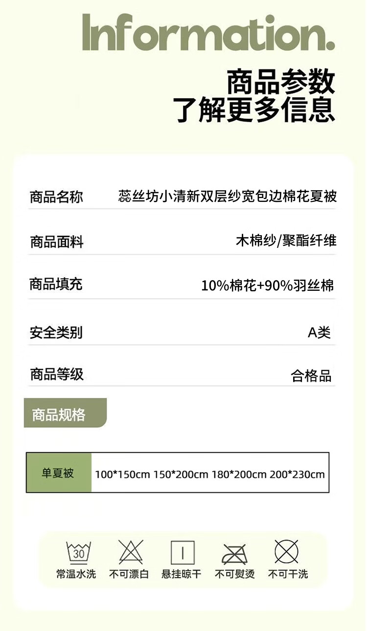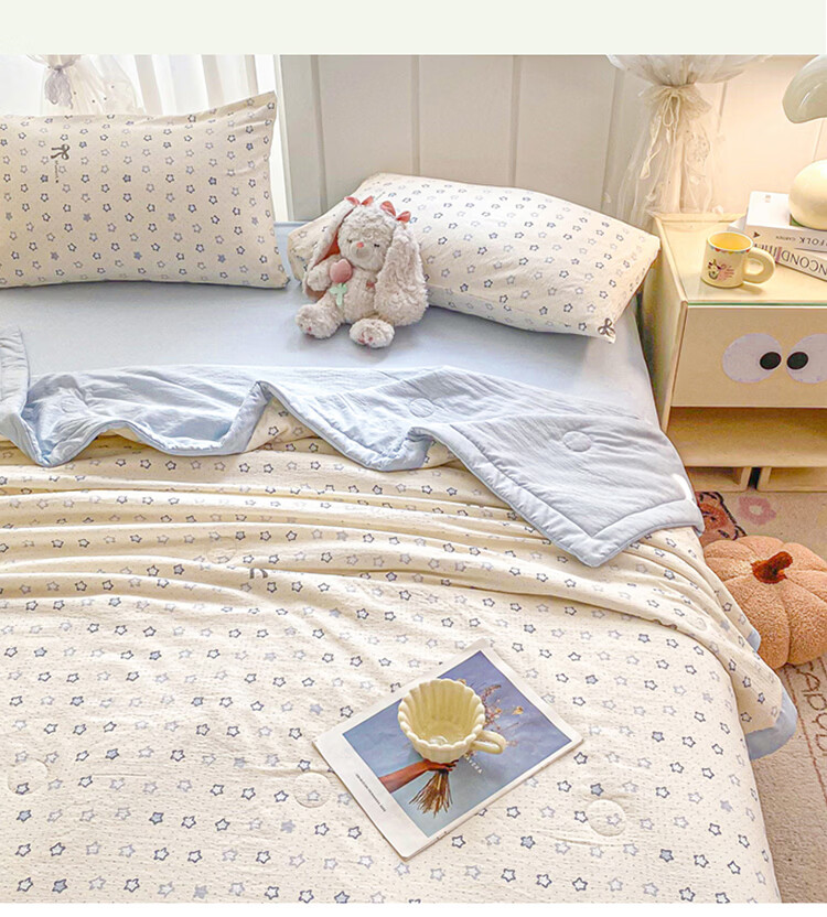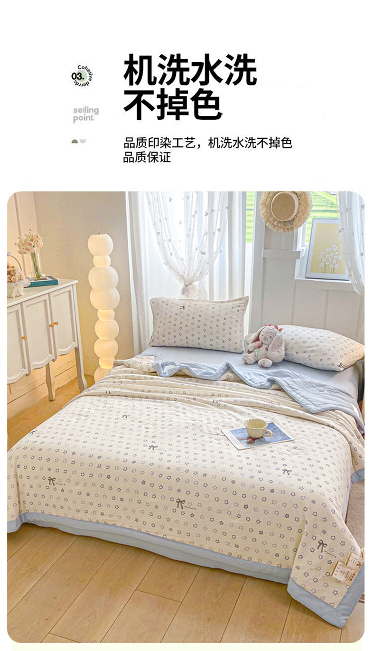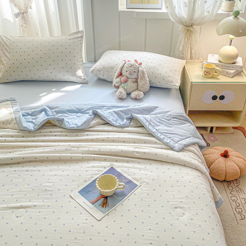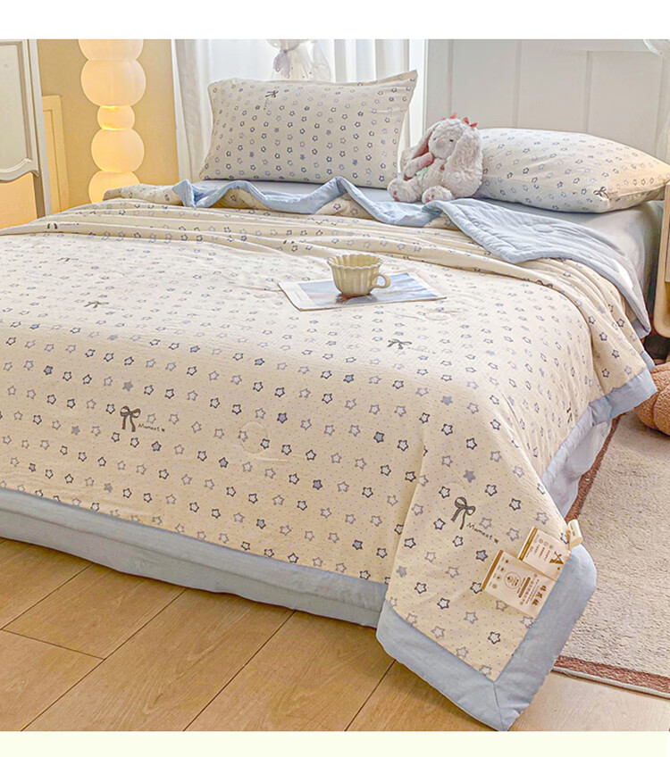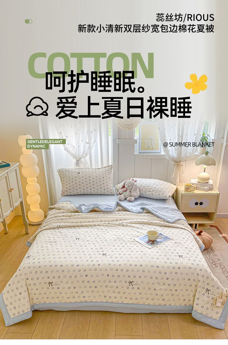 蕊丝坊 新款小清新双层纱宽包边棉花夏被