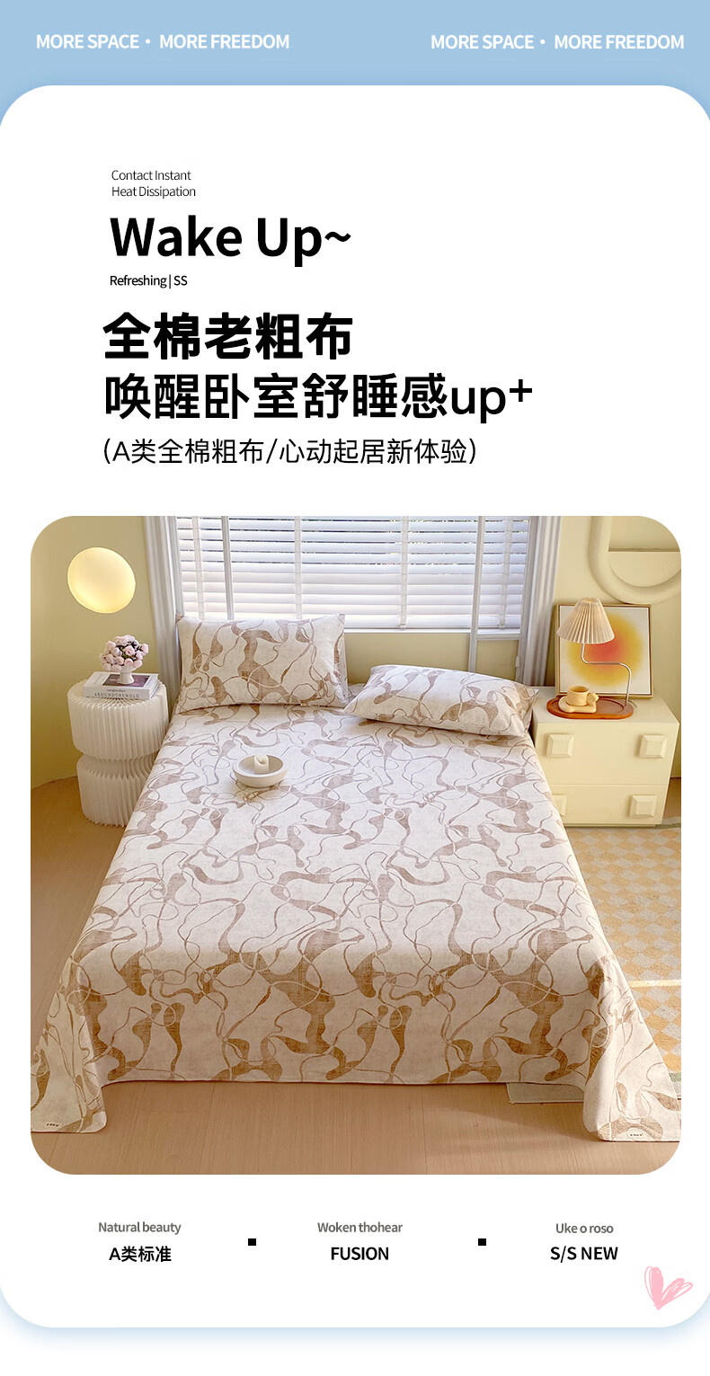 百丽安娜 全棉老粗布床单凉席三件套