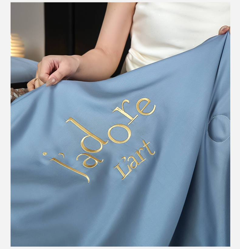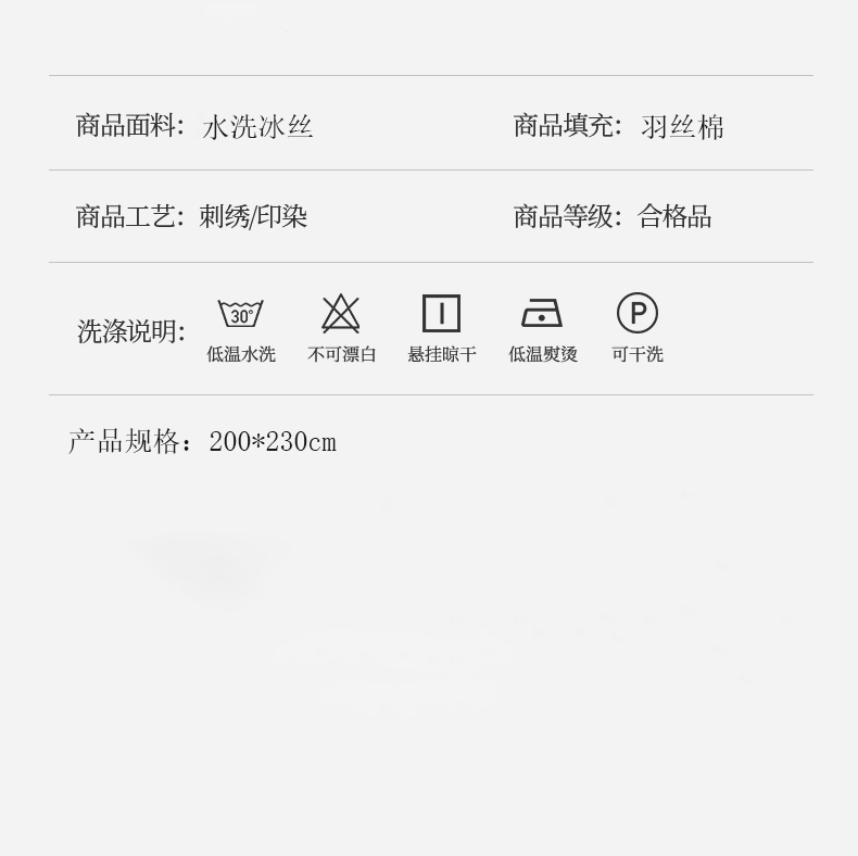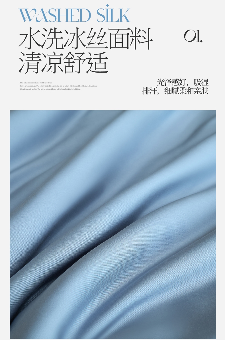 水洗冰丝面料舒爽柔滑,;具有良好的透气性,手感柔软,;水洗冰丝带来的清凉感,恰好成为燥热天气的一抹清凉。