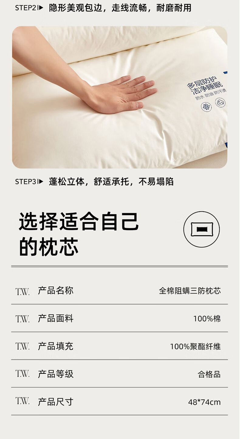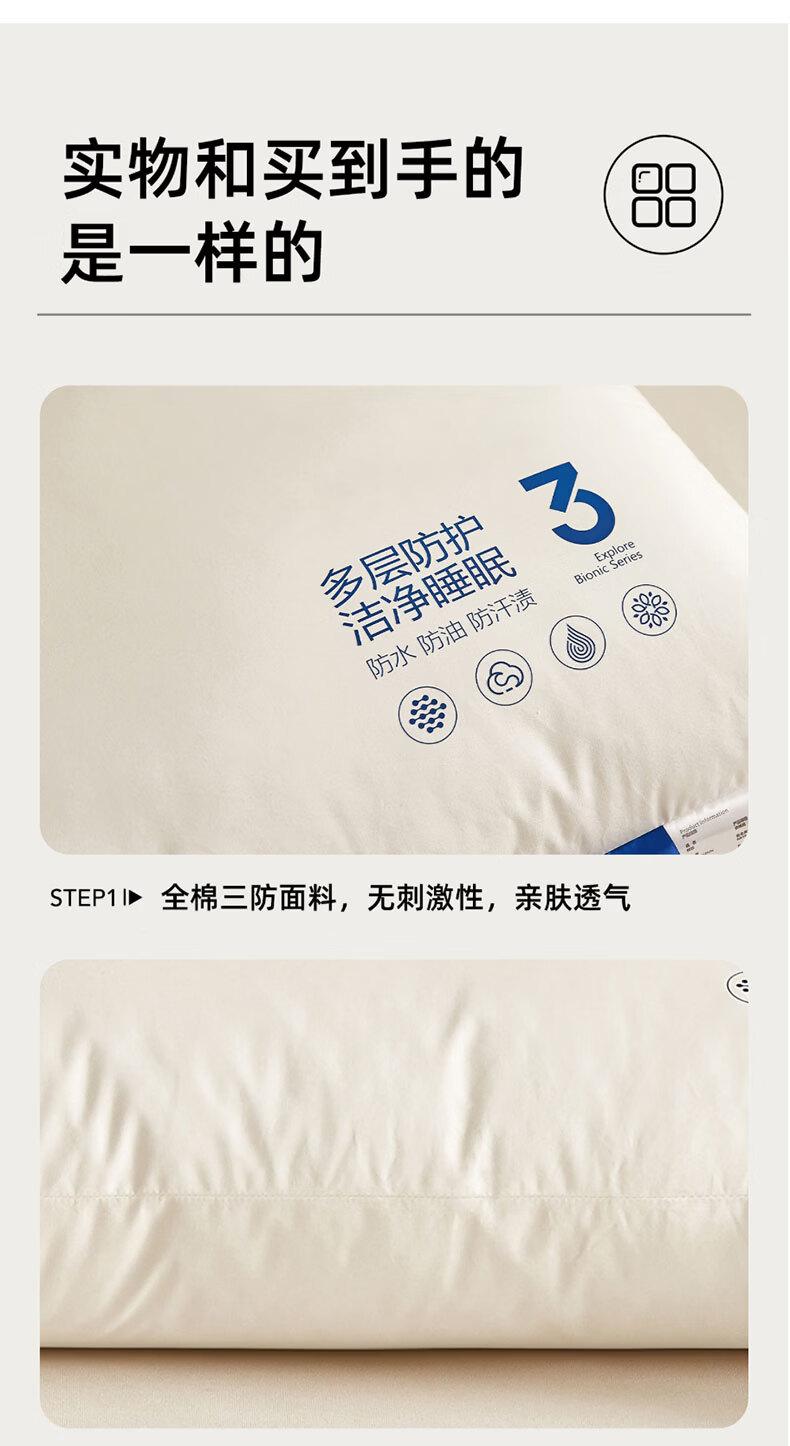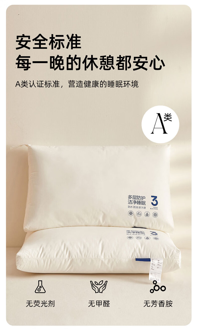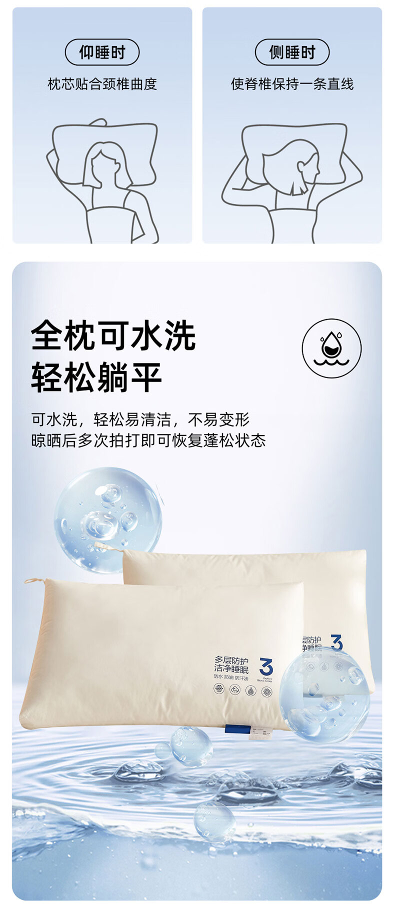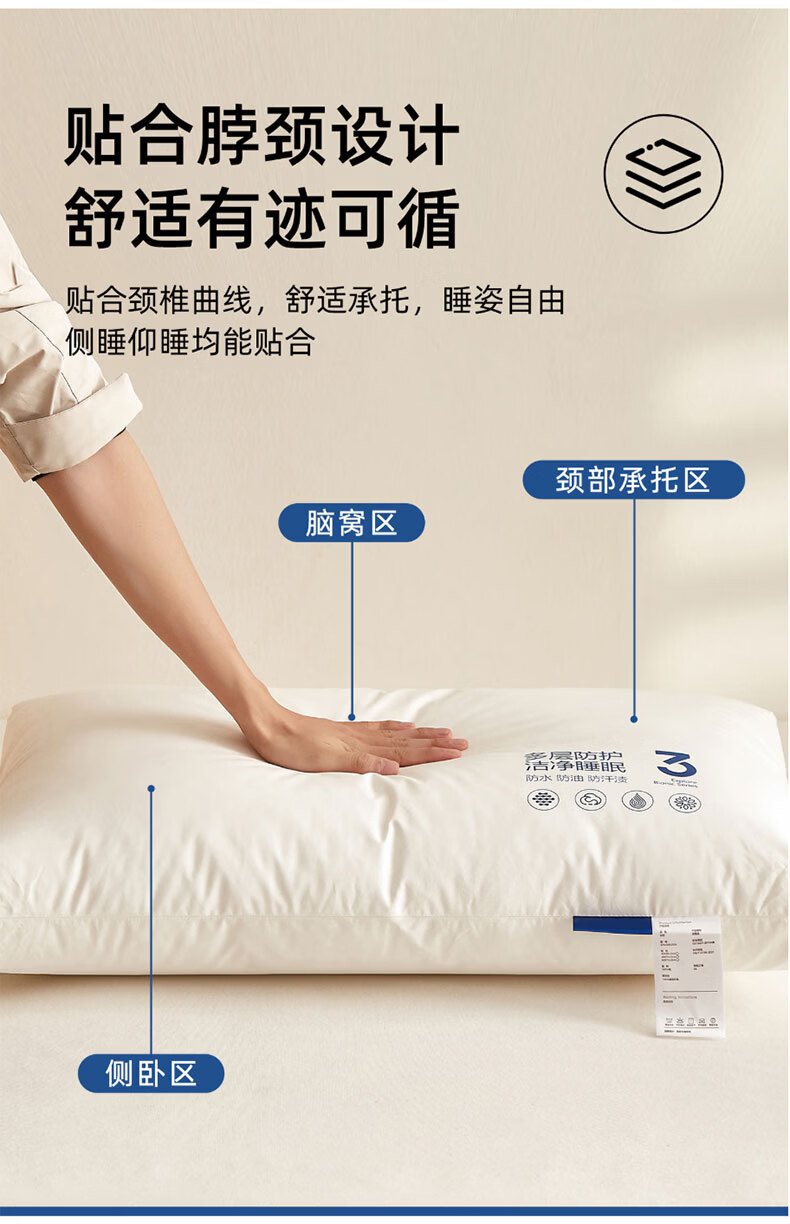 全新升级2.0,彻底改变使用体验,三防科技;蓬松饱满,抑菌防螨,清爽透气,柔韧支撑;全枕水洗,安全标准每一晚的休憩都安心