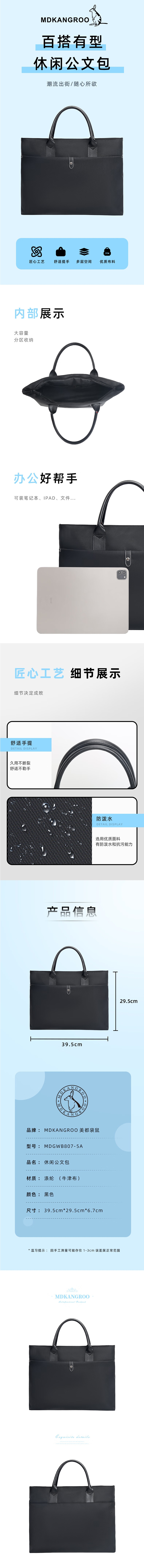 内部可装文件,日常小散件;手提耐磨超纤革、前副袋;适合会议、通勤