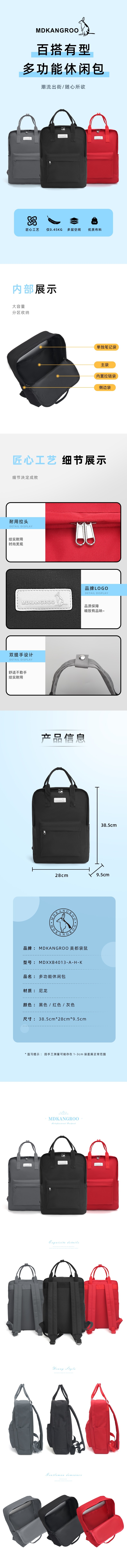 美都袋鼠 多功能双肩包MDXXB4013