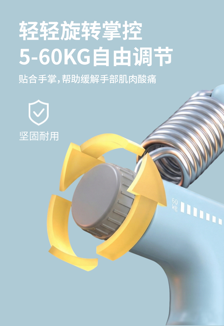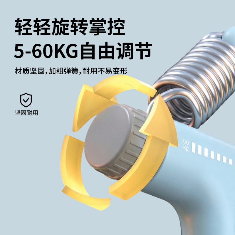 加厚泡棉手柄,防滑不硌手;可调握力器力度灵活调,针对性练臂力,握力超方便;锻炼手指开度和灵活性,小巧便携,随时锻炼