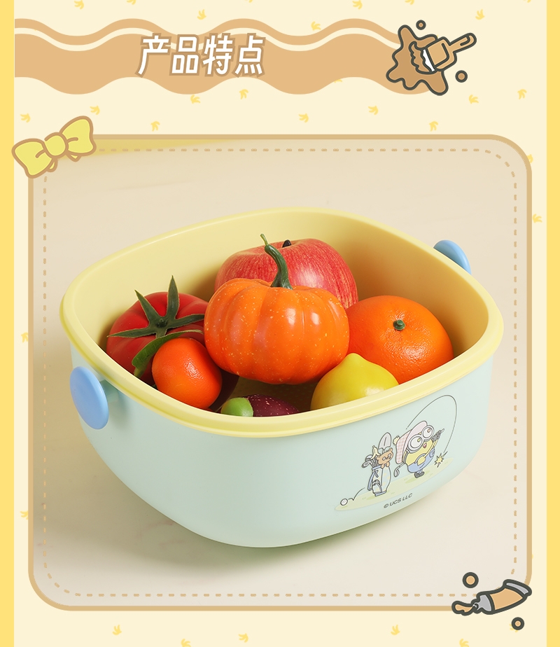 双层结构设计,清洗沥水一步到位;上层清洗区 专为放置和清洗水果、蔬菜等食材设计;人性化设计,使用便捷,双耳提携设计