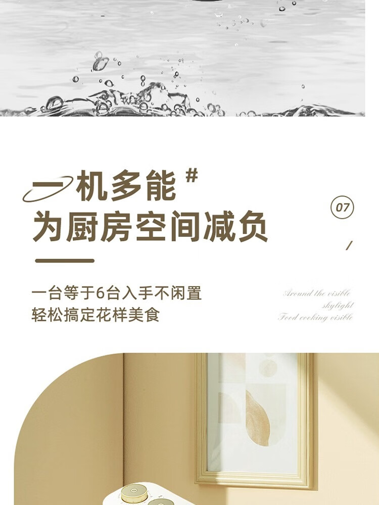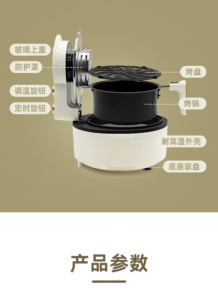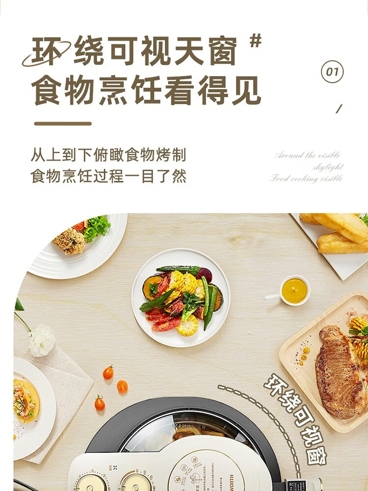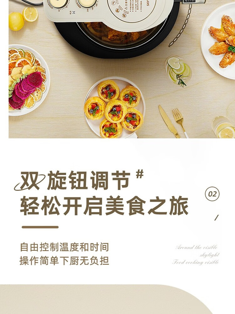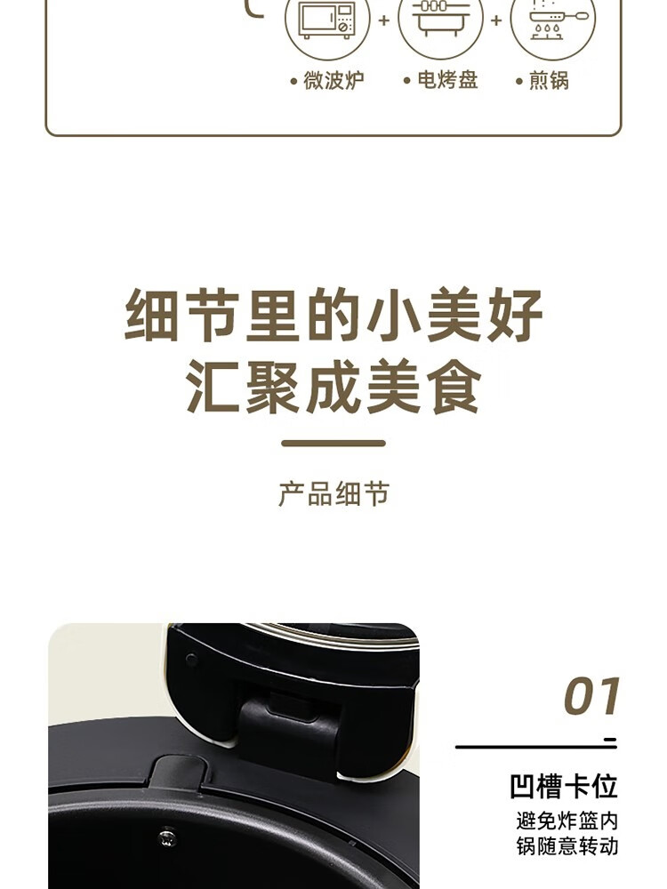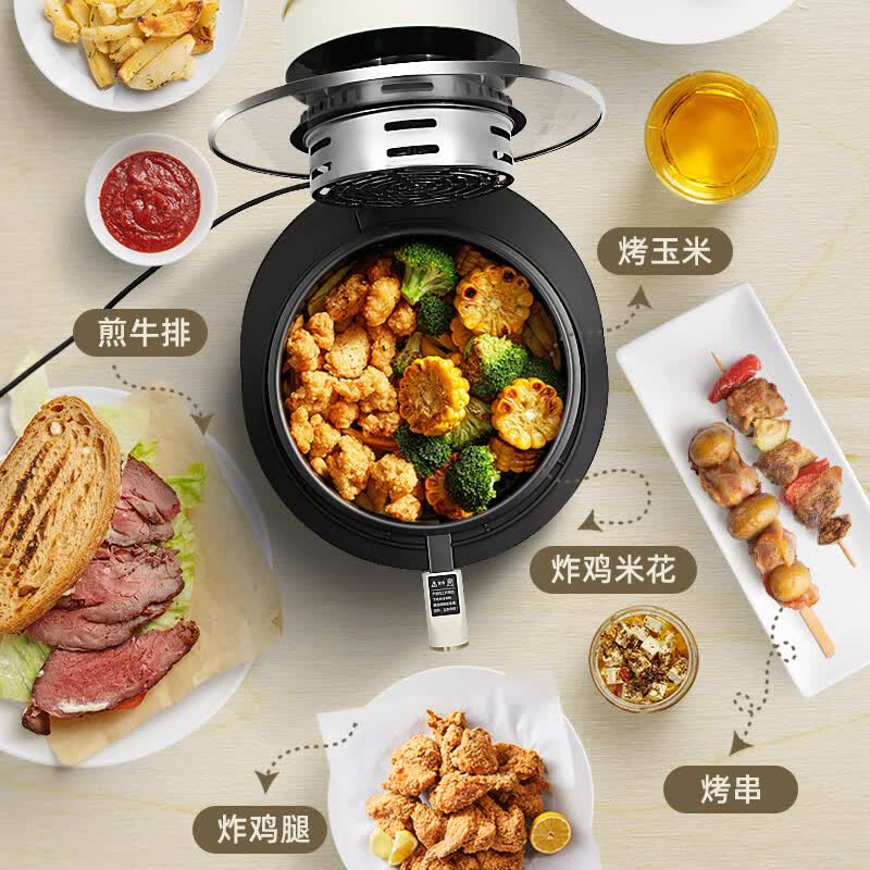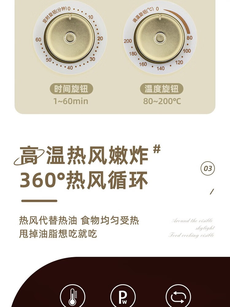 6L大容量可视化空气炸锅;食品接触级不沾锅涂层,久用不沾容清洁;长效控时、精准控温
