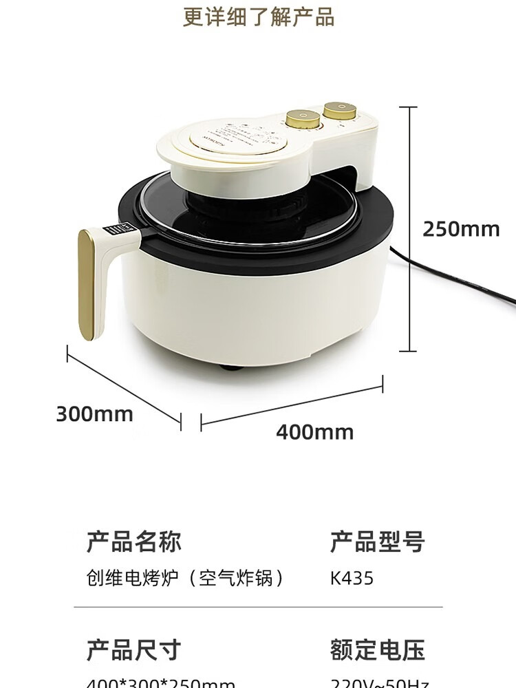 创维 免翻面可视6L大容量空气炸锅K435