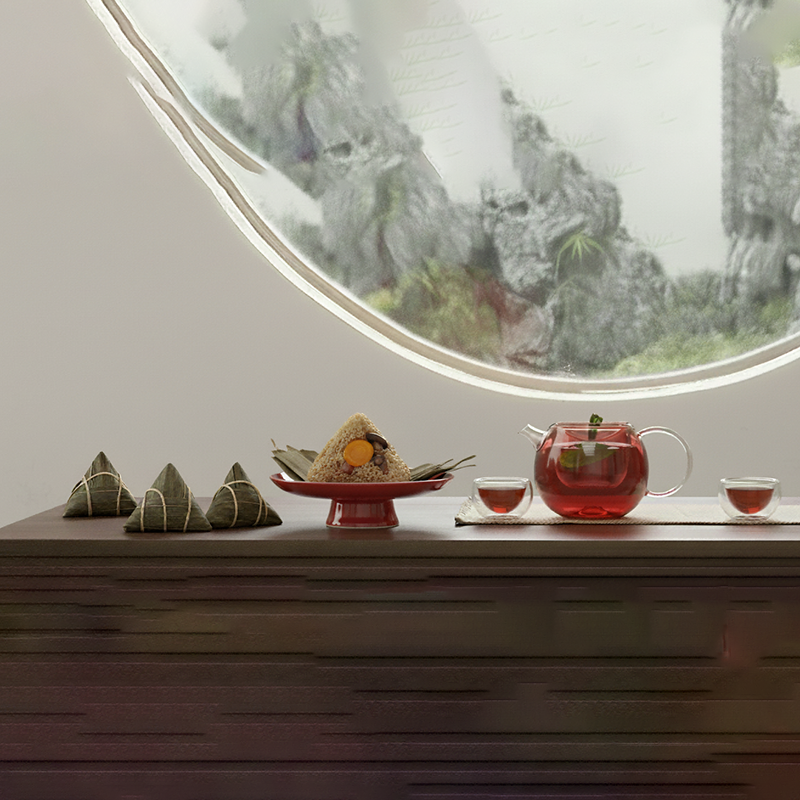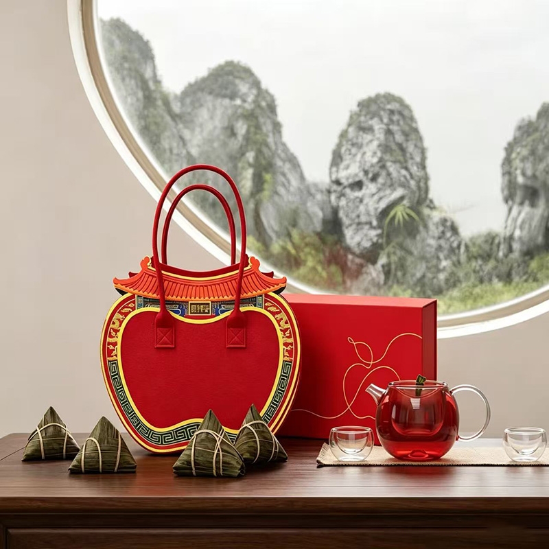 粽叶裹藏千载民俗,红壶盛满四季安康;以两杯对坐之景,叙团圆之景;以一枚 “苹果” 之形,化 “平安” 之愿