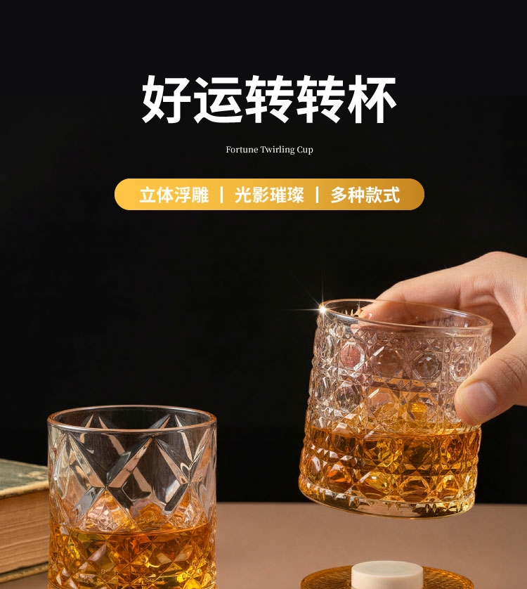 两款不同精致花纹;旋转不倒,趣味解压;晶莹剔透 彰显酒色