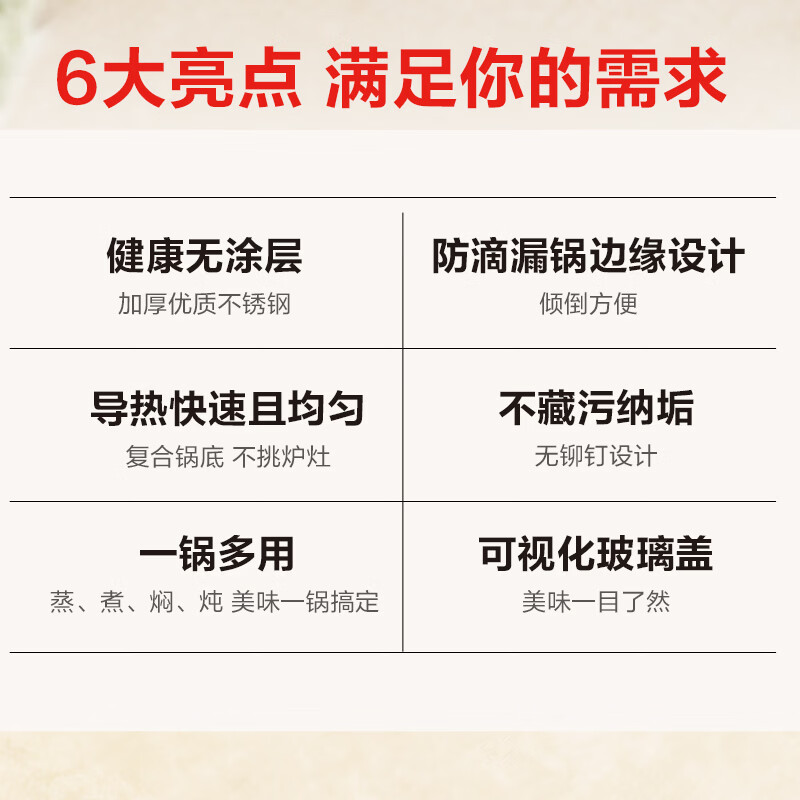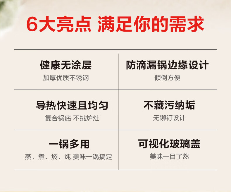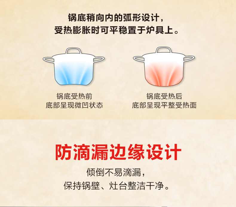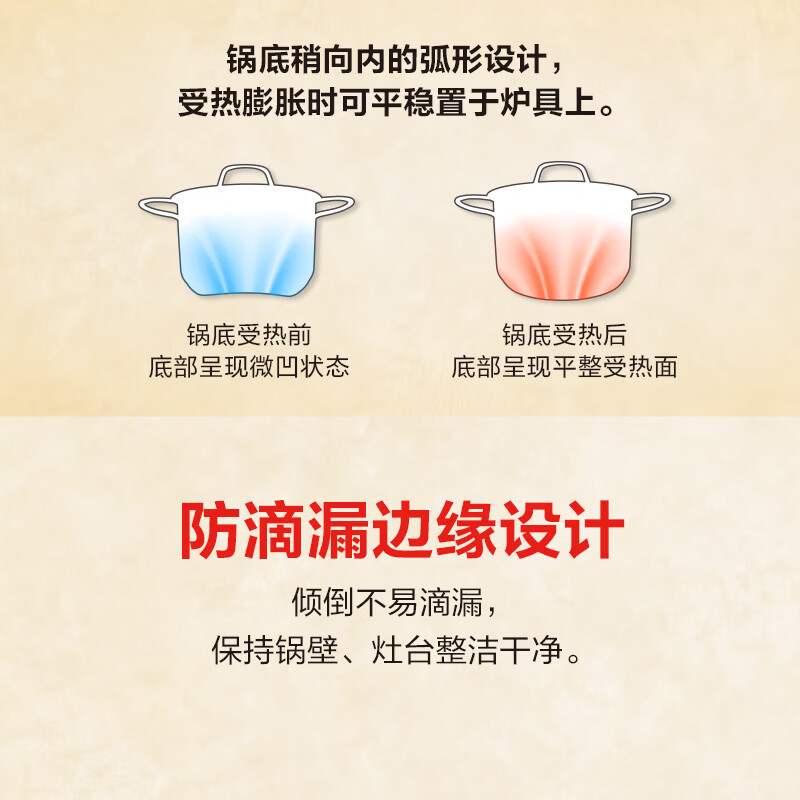 国际品牌;导热快速且均匀;防滴漏锅边缘设计