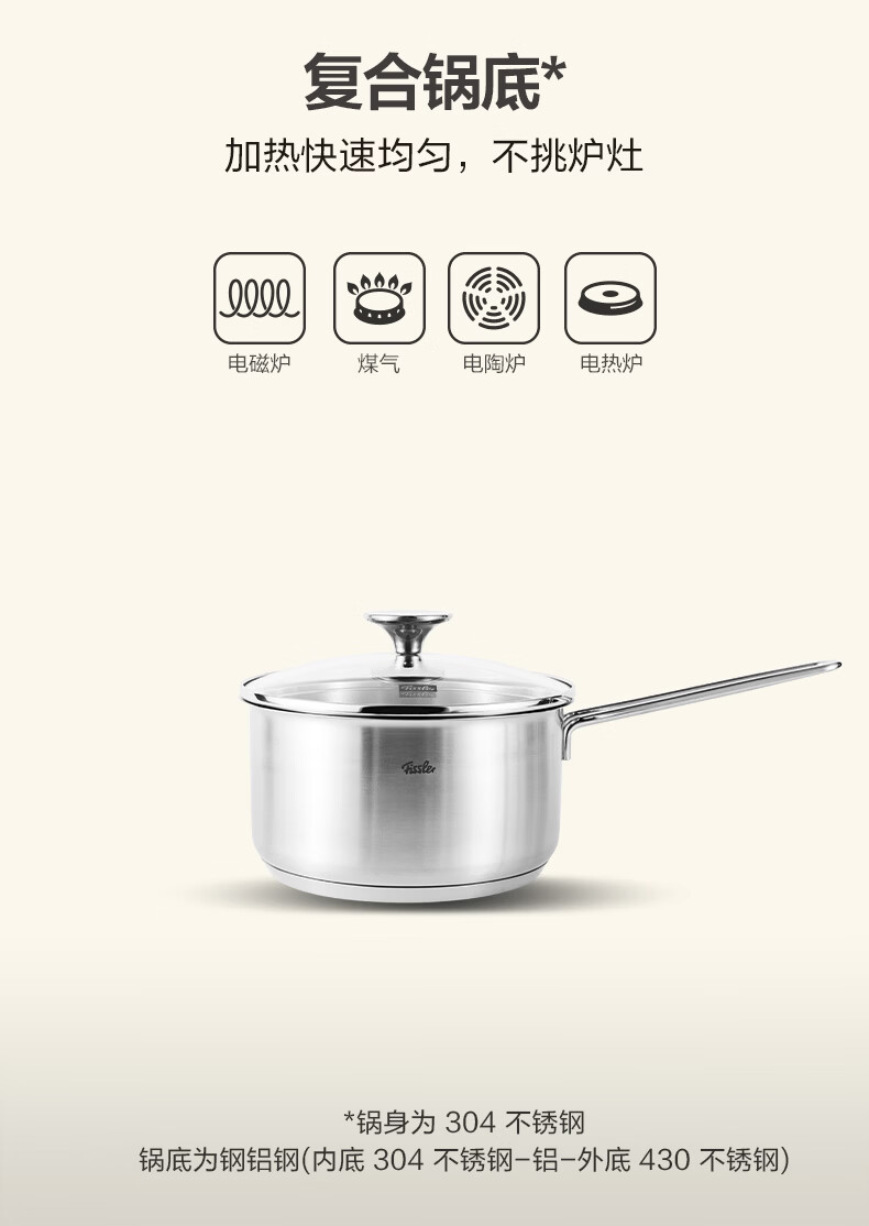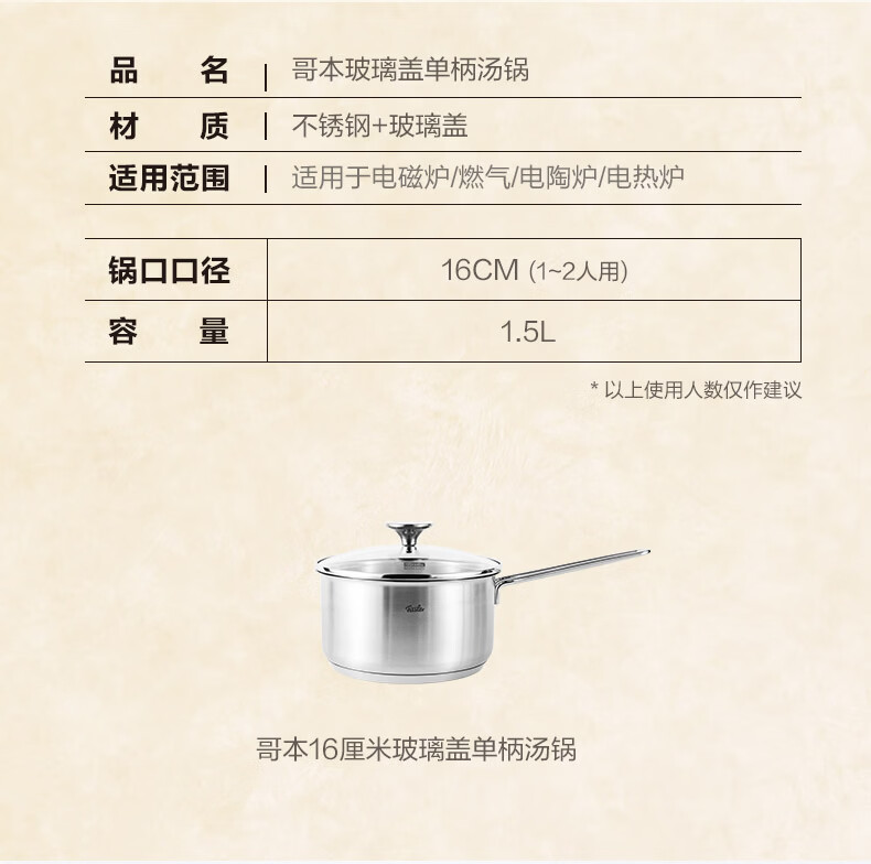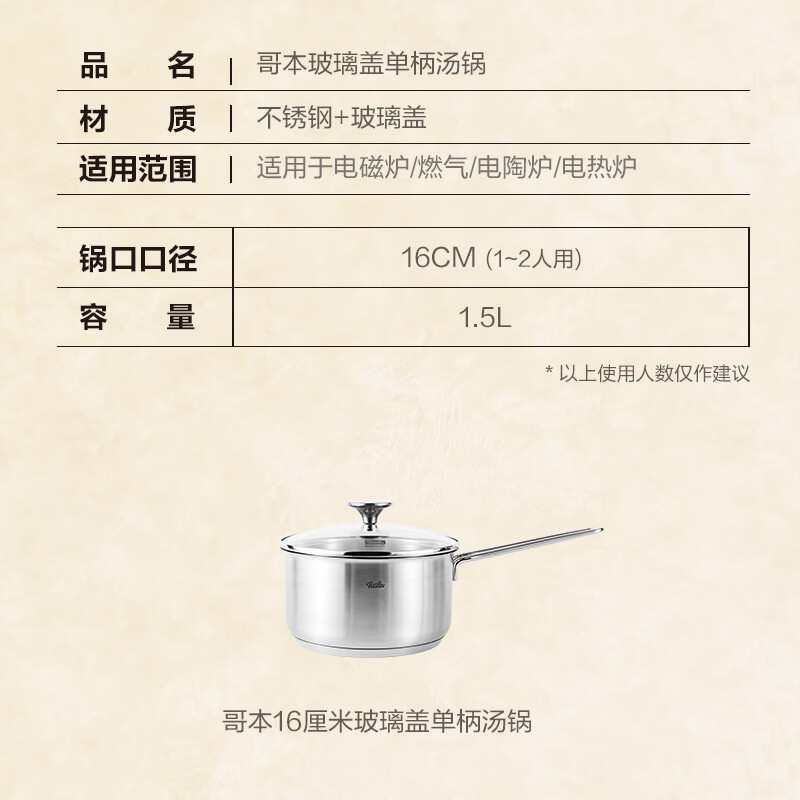 菲仕乐 哥本系列16cm奶锅玻璃盖