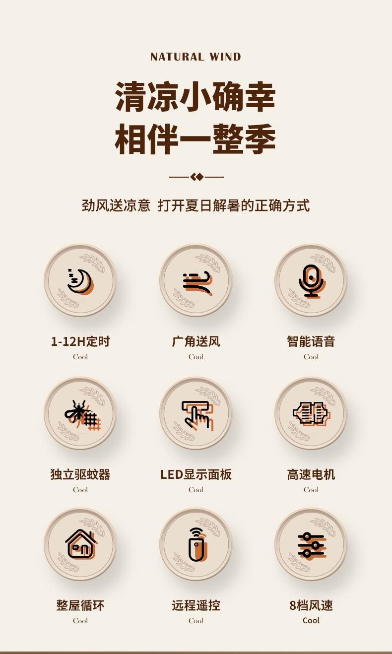 12H定时预约夜晚轻音不扰眠;AI智能语音呼风得风超给力;强劲高速电机稳定送风不扰人
