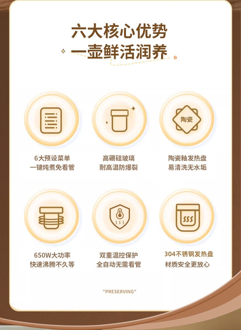 六大预设菜单 触屏智能款;高硼硅玻璃 耐高温防爆裂;食品级304发热盆 送蒸架架